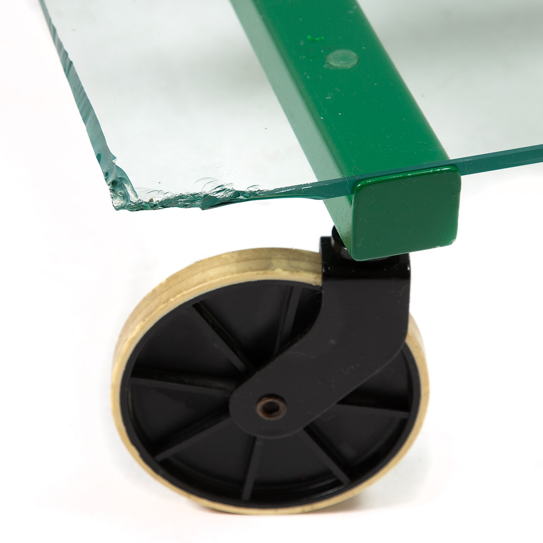 Bruksslitage. Nedersta glasskiva med nagg.