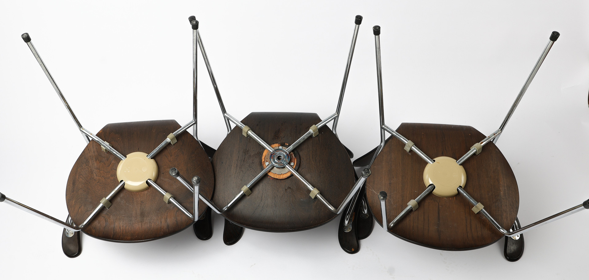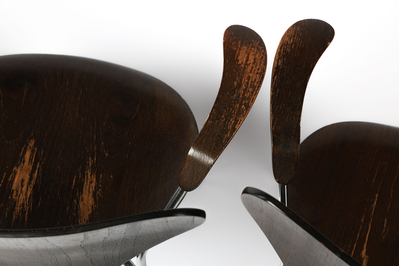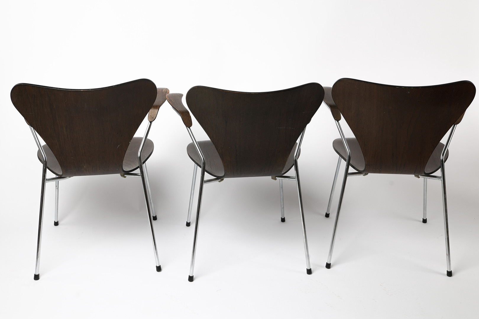 ARNE JACOBSEN, 3 st karmstolar, "Sjuan", Fritz Hansen, 1977, mörkbetsad ek.