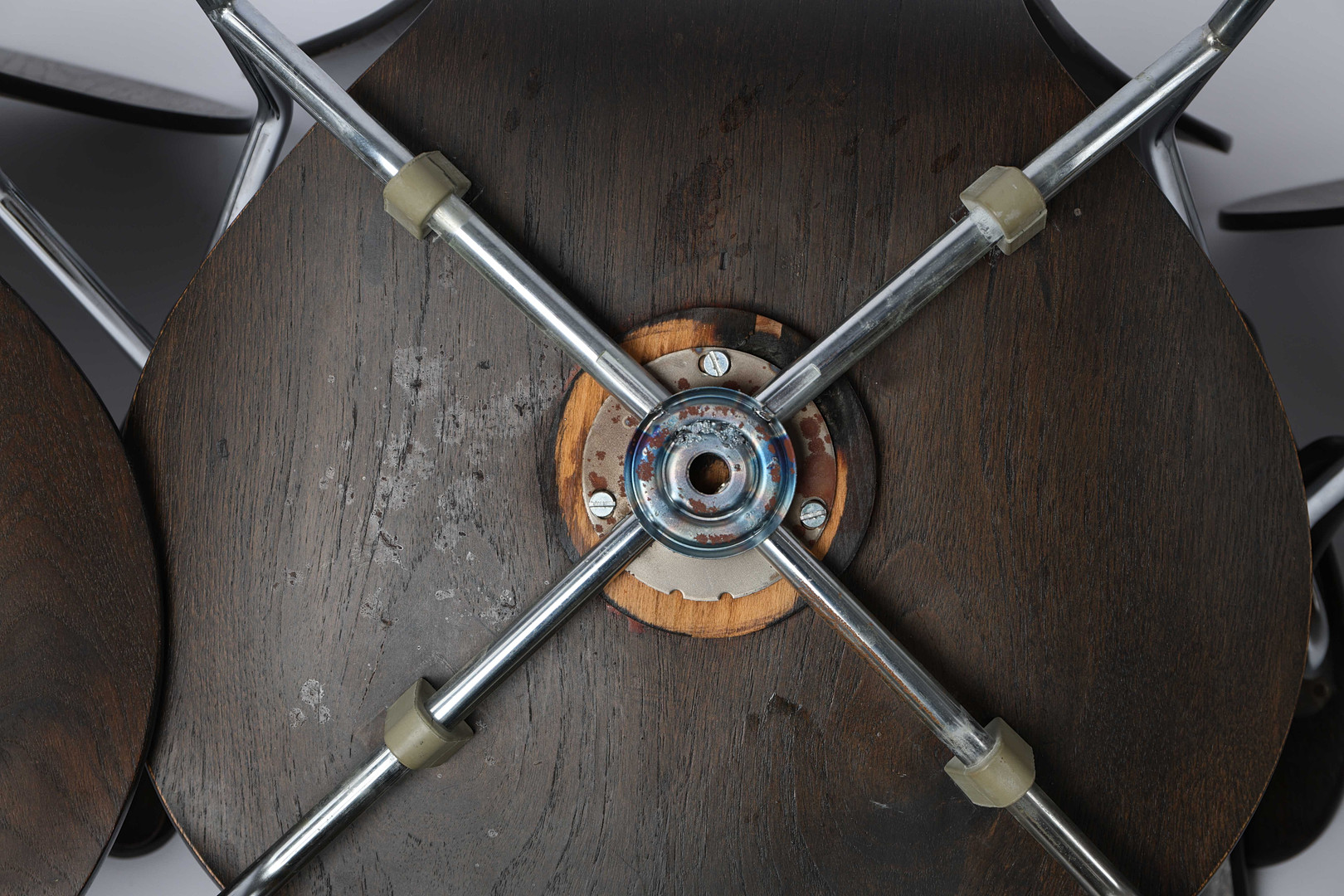 Slitage. Gummifästen mellan sitsar och ben med skador och sprickor.