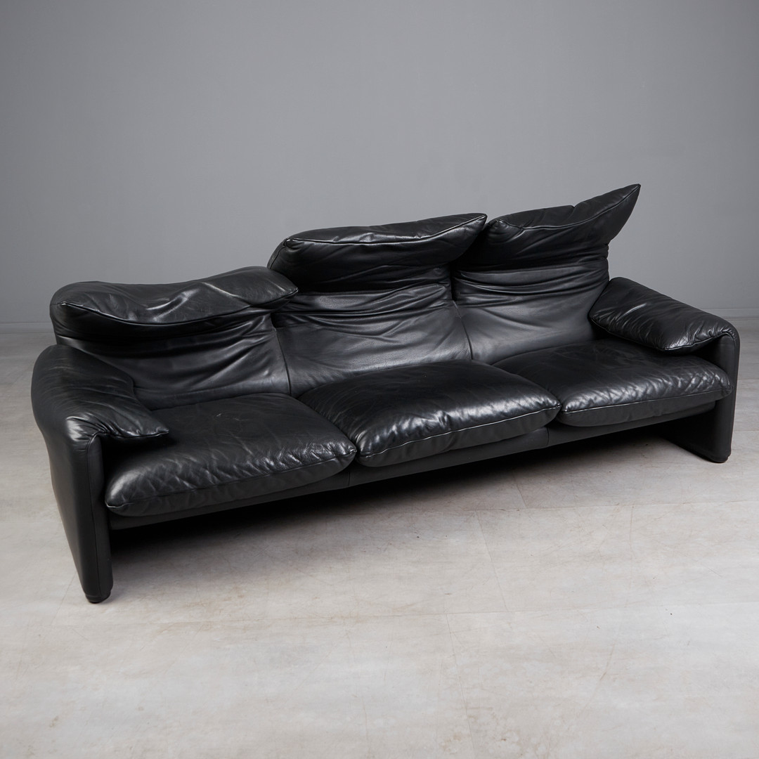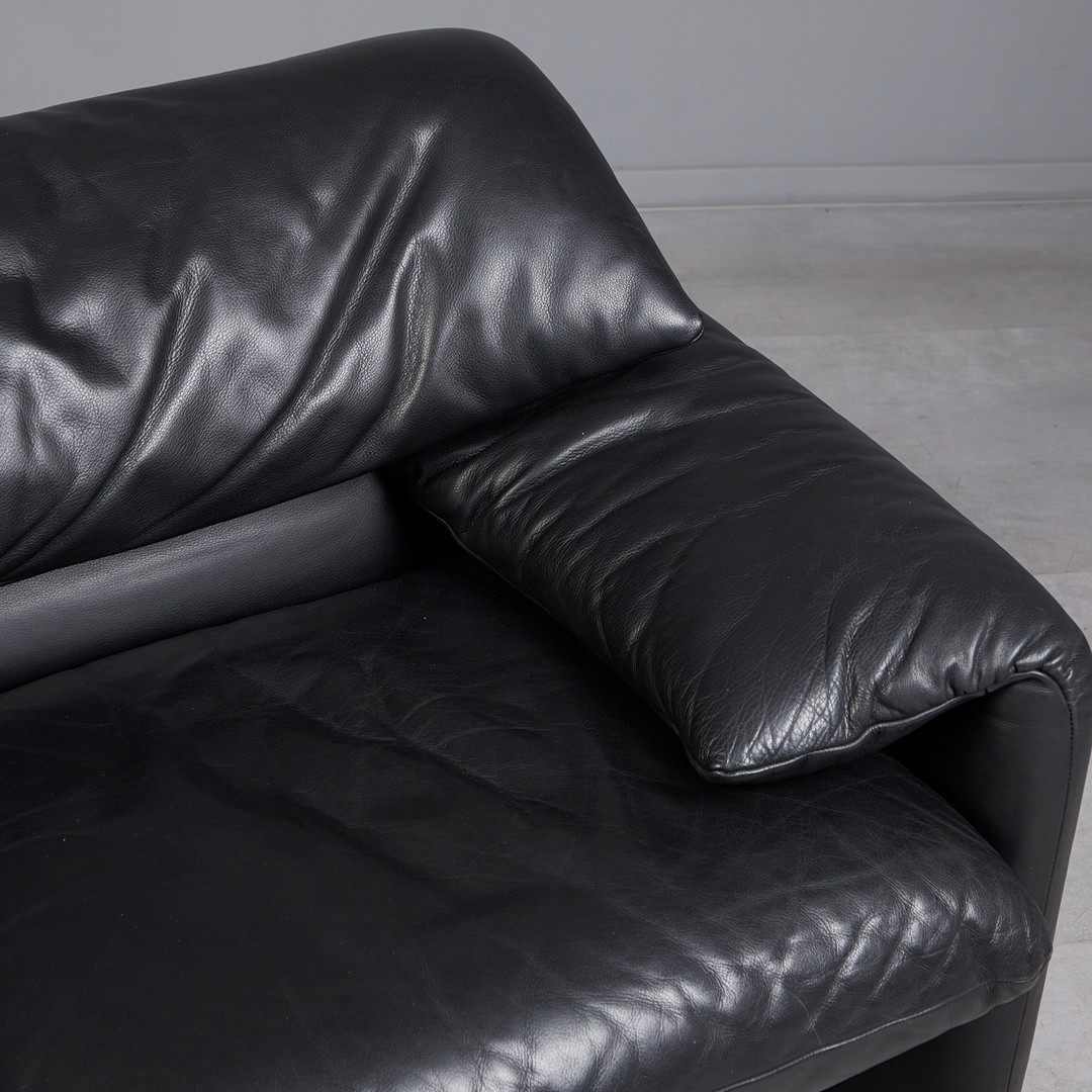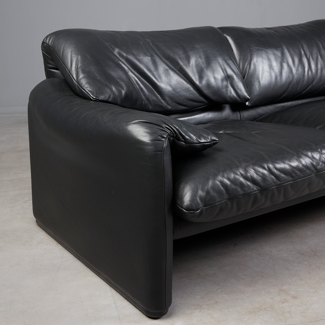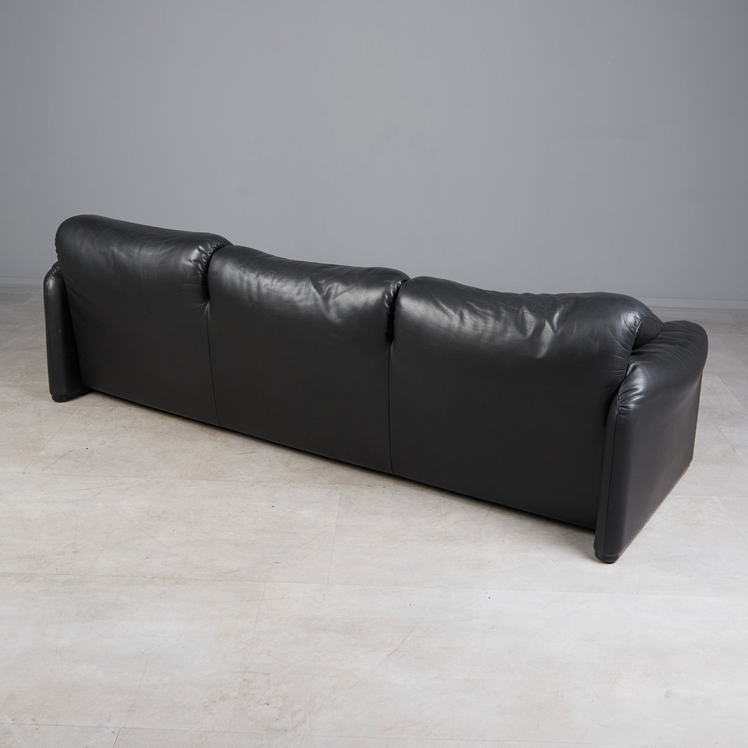 VICO MAGISTRETTI. für Cassina, Dreisitzer-Sofa / Couch, Modell 'Maralunga', Leder, Entwurf 1973, Italien.