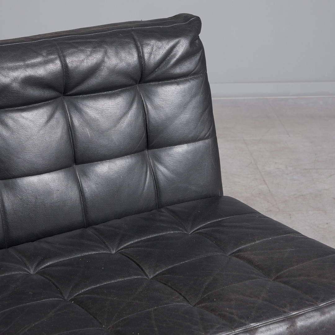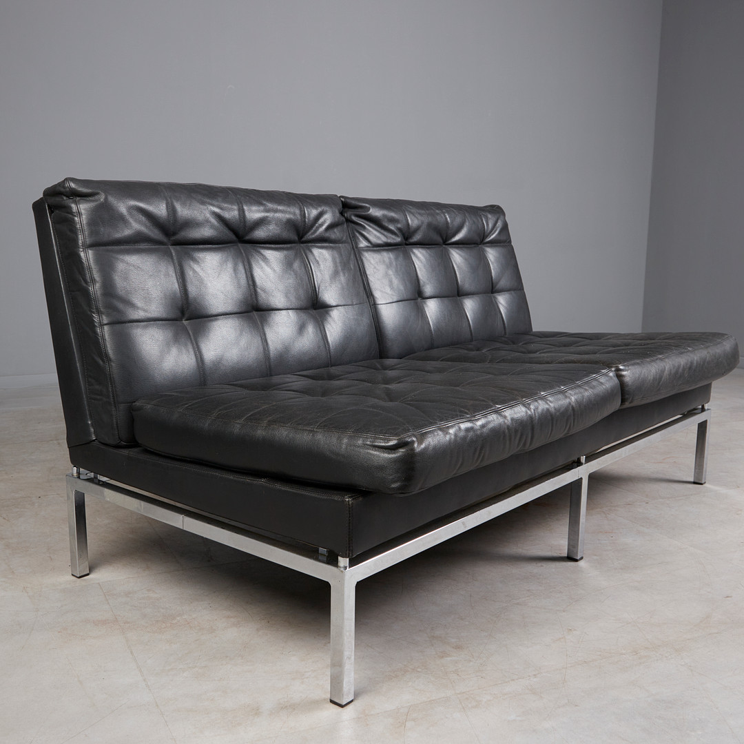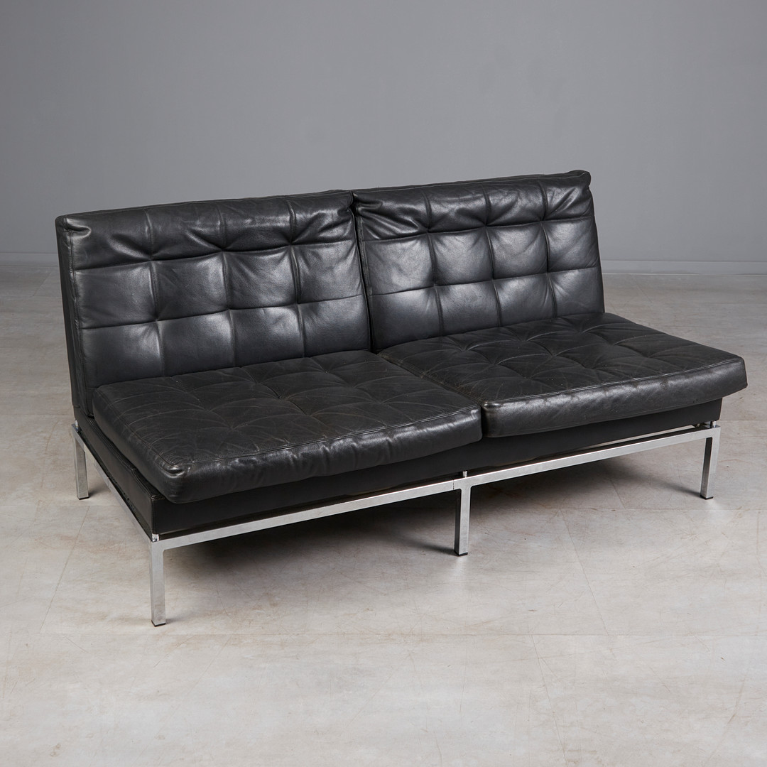 FLORENCE KNOLL. IM STIL VON. Zweisitzer-Sofa / Couch, Stahl, verchromt, Leder, 1960er Jahre.