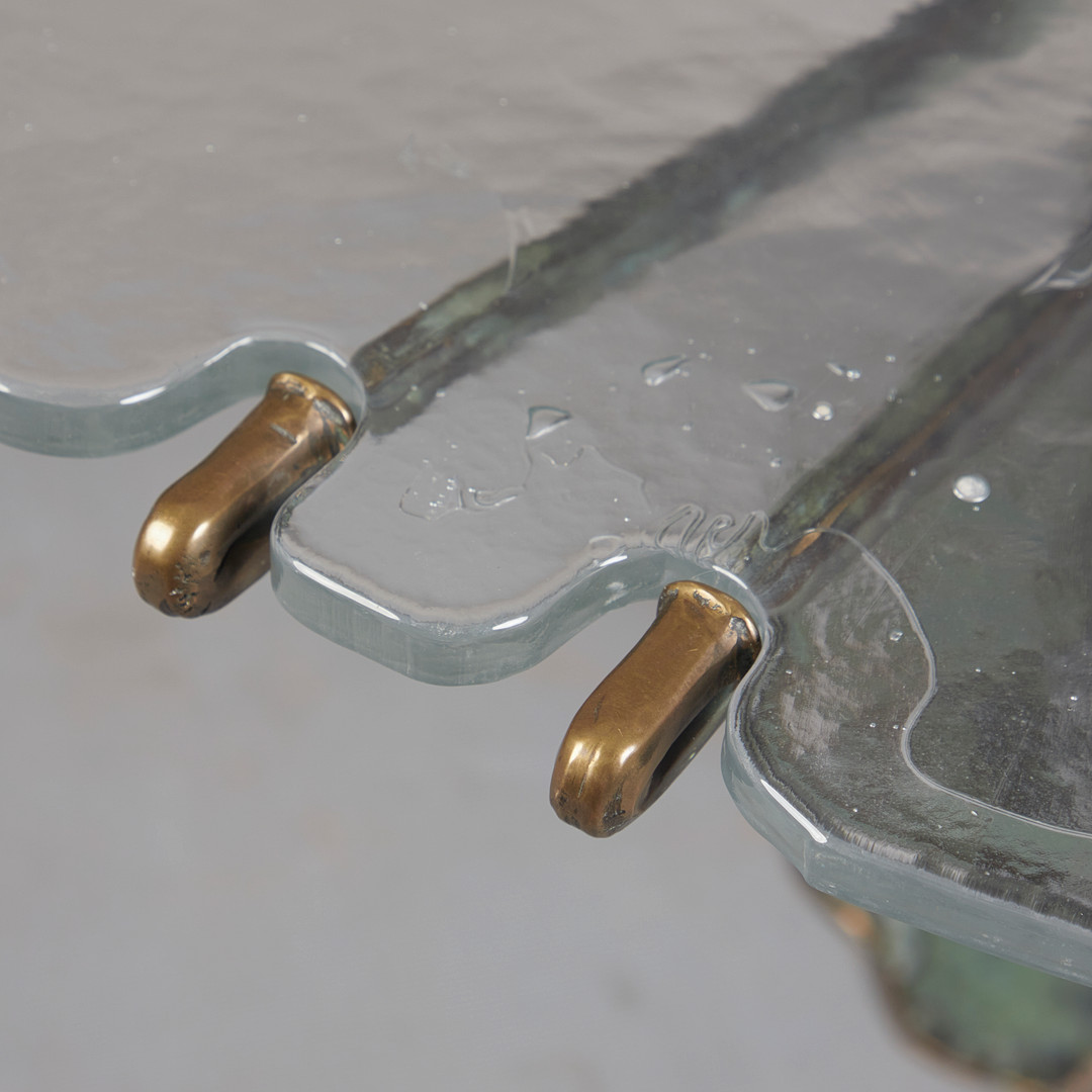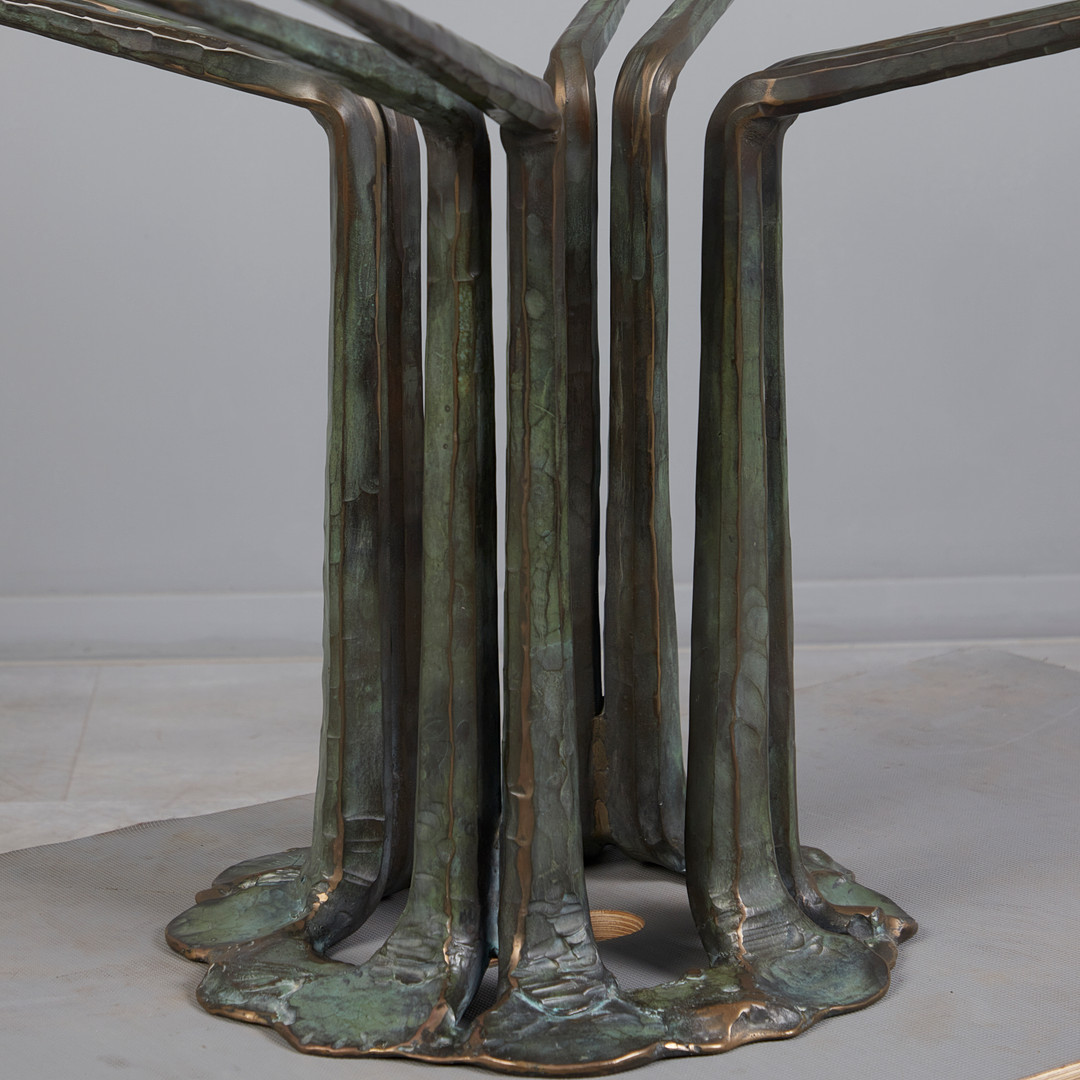 LOTHAR KLUTE (1946 - 2023). Brutalistischer Tisch, Bronze, Glas, Deutschland.