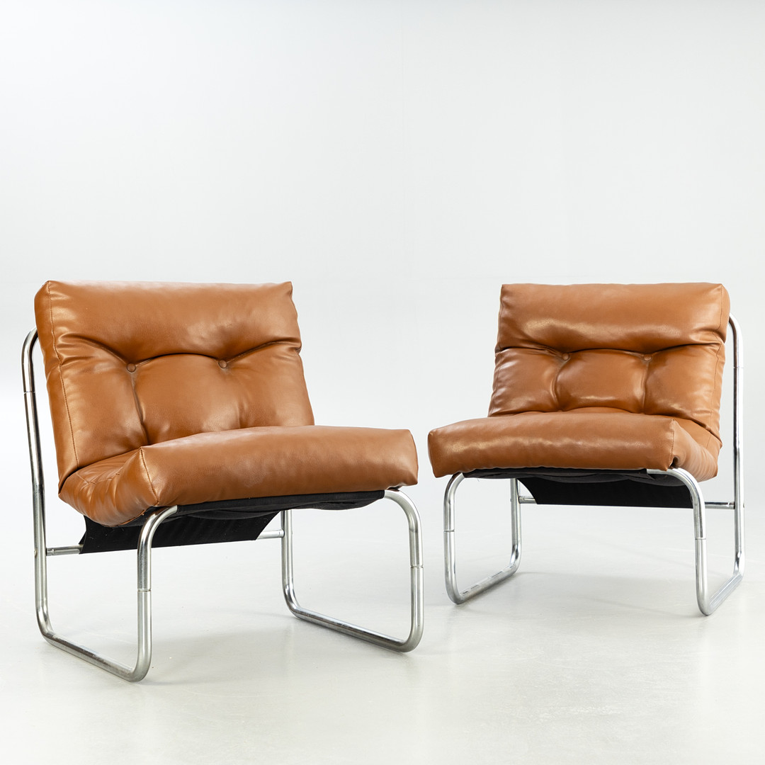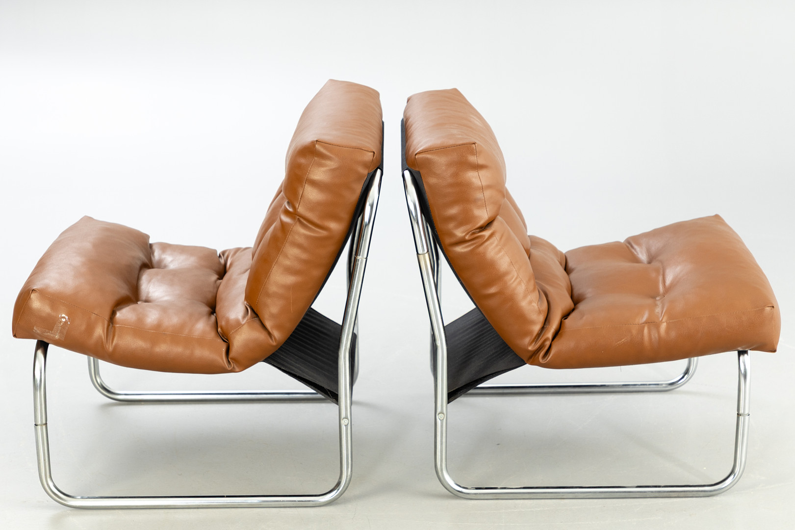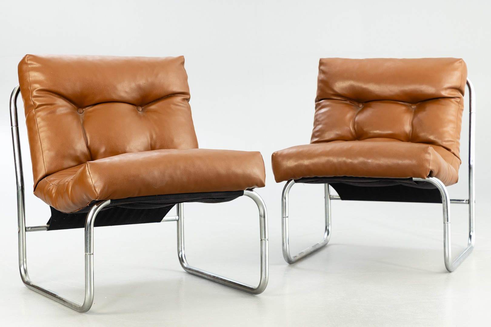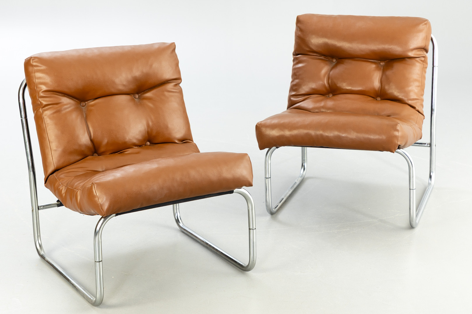 GILLIS LUNDGREN. Ikea. Paar Sessel „Pixi“ Stahlrohr / Kunstleder, 1970er Jahre.