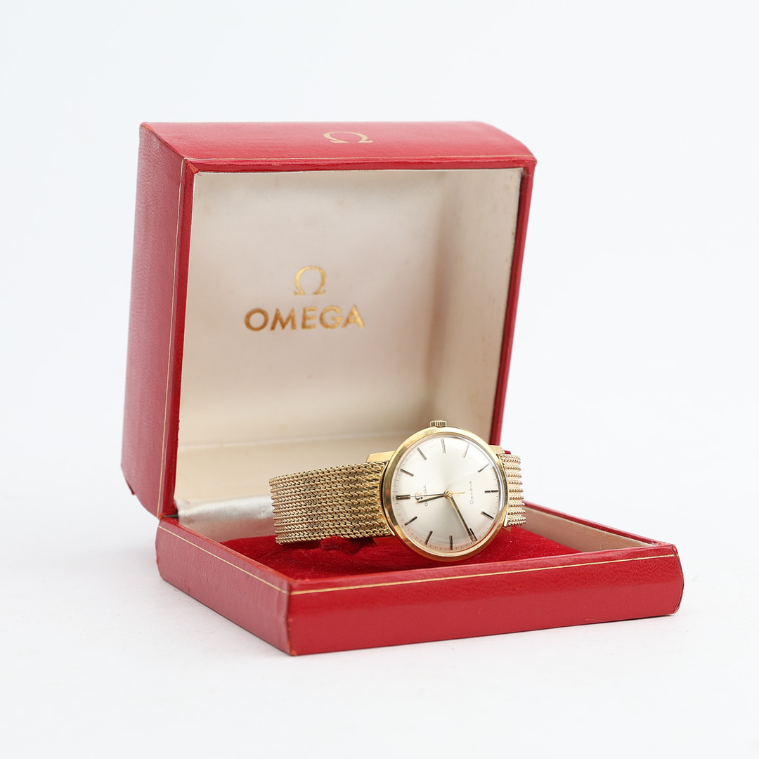OMEGA GENEVE, armbandsur, 14K guld, manuellt uppdrag, Omega-länk 18K guld, ca 1968.
