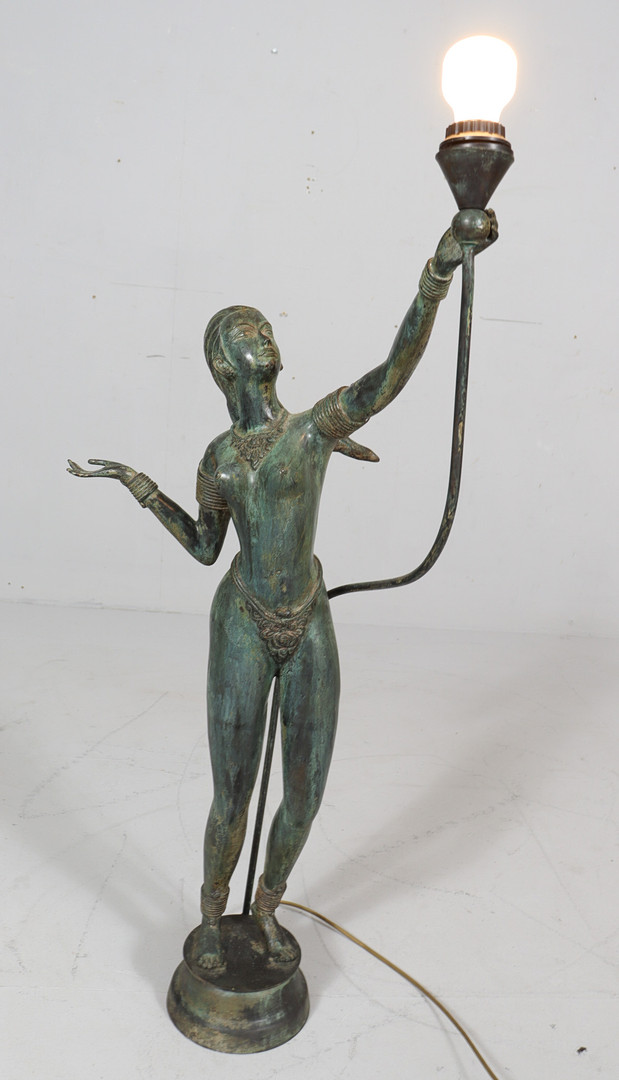 Skulpturale Stehlampe/Stehleuchte, Frauenakt, Bronze, Frankreich, 1980er Jahre.