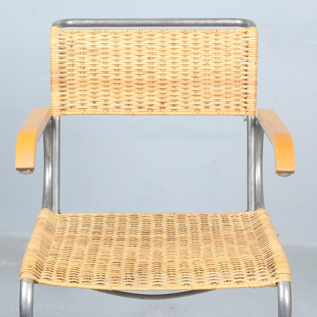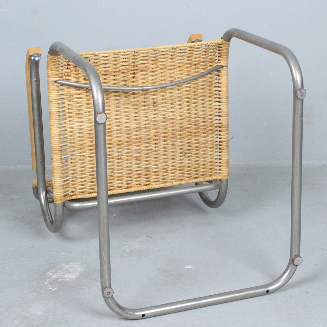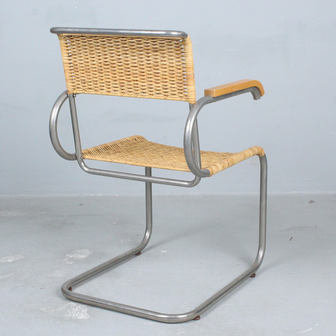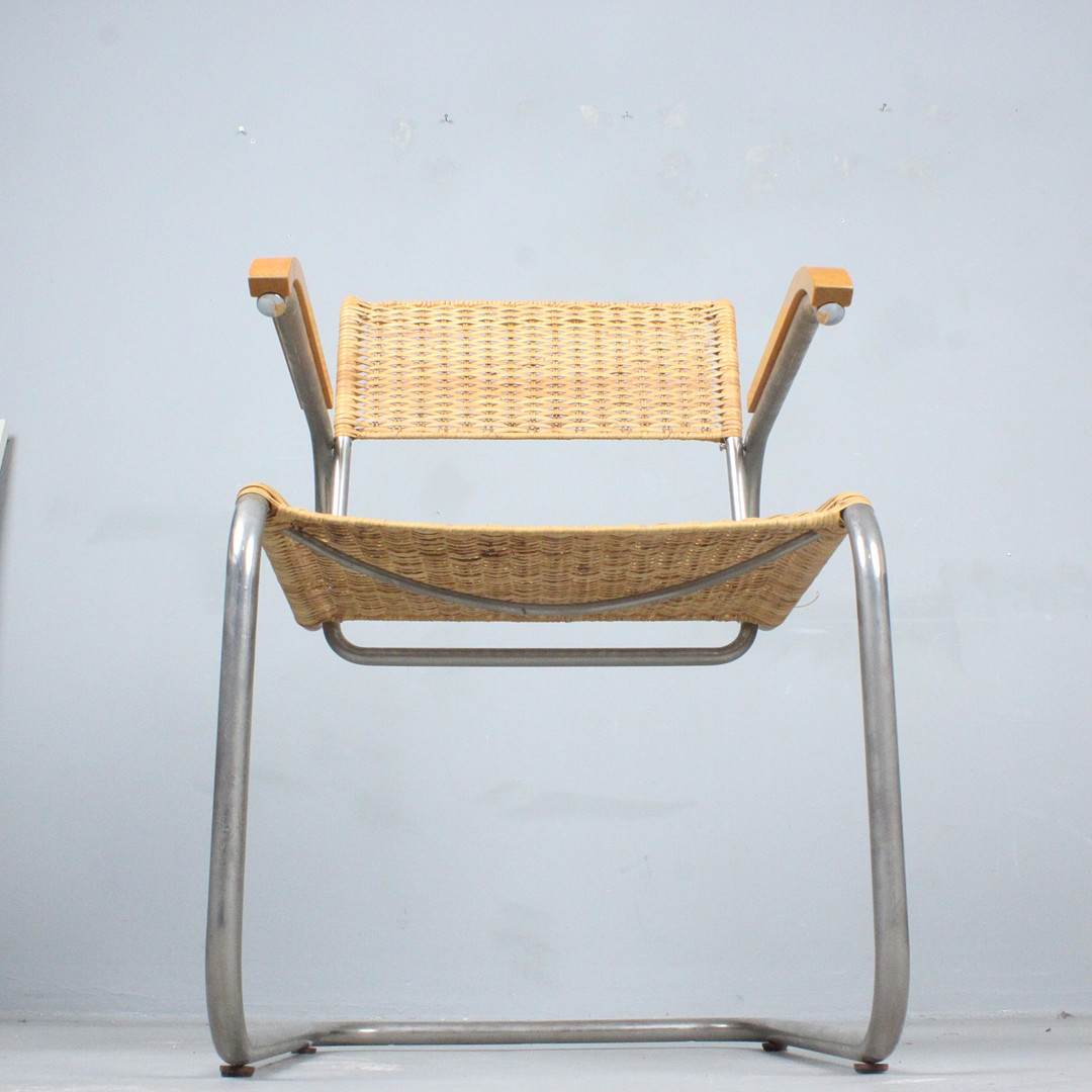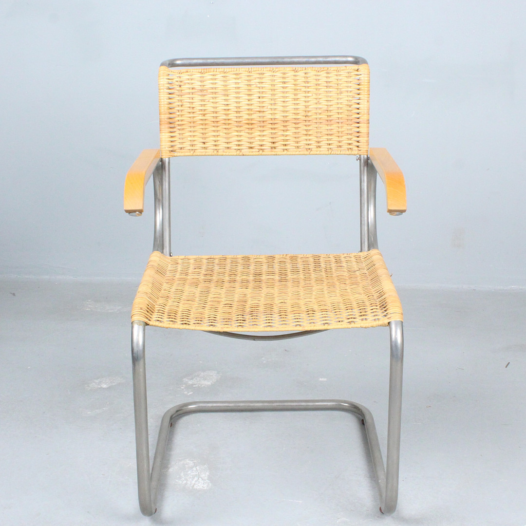 MARCEL BREUER. für Tecta, Freischwinger mit Rattan Geflecht, Modell '' D40 ''.