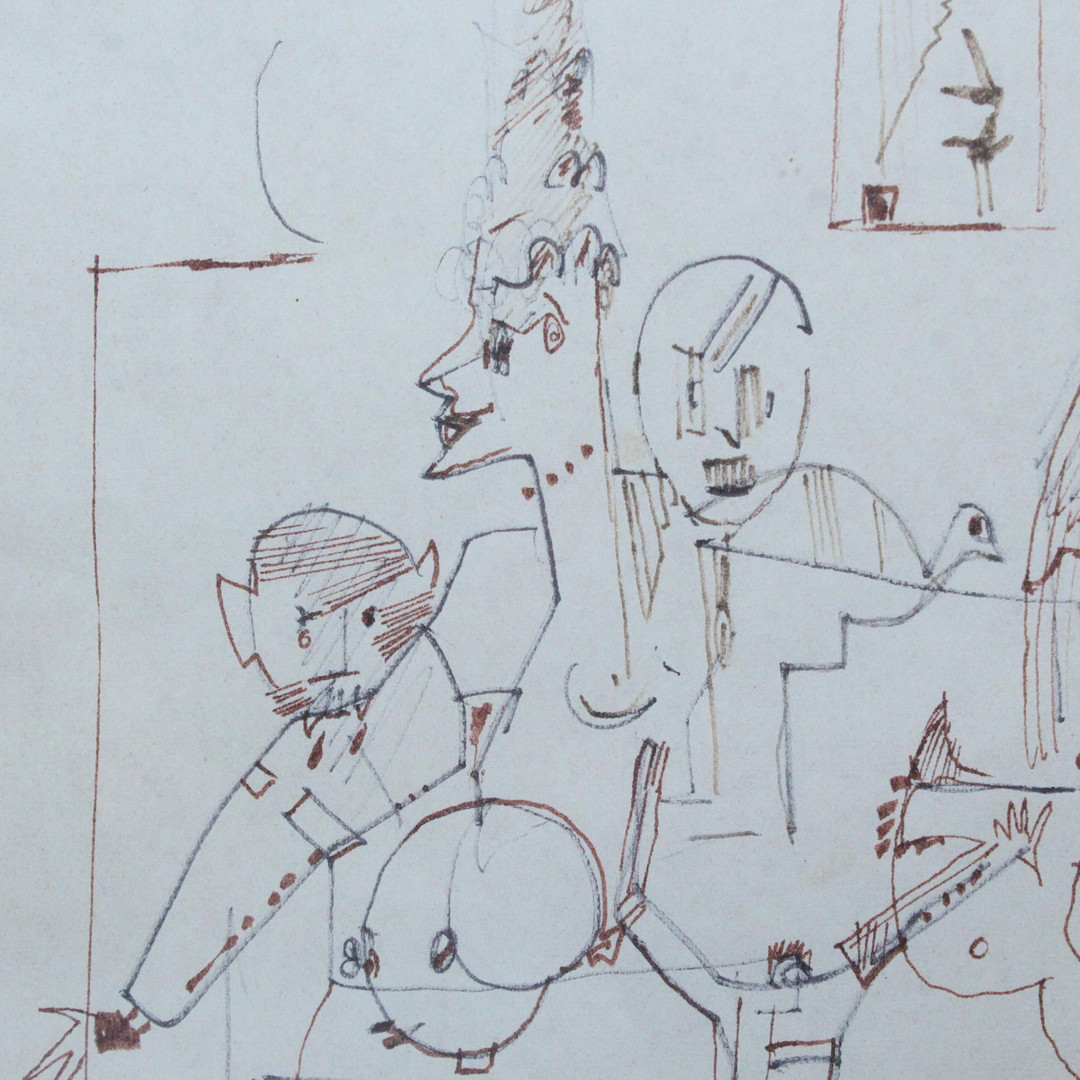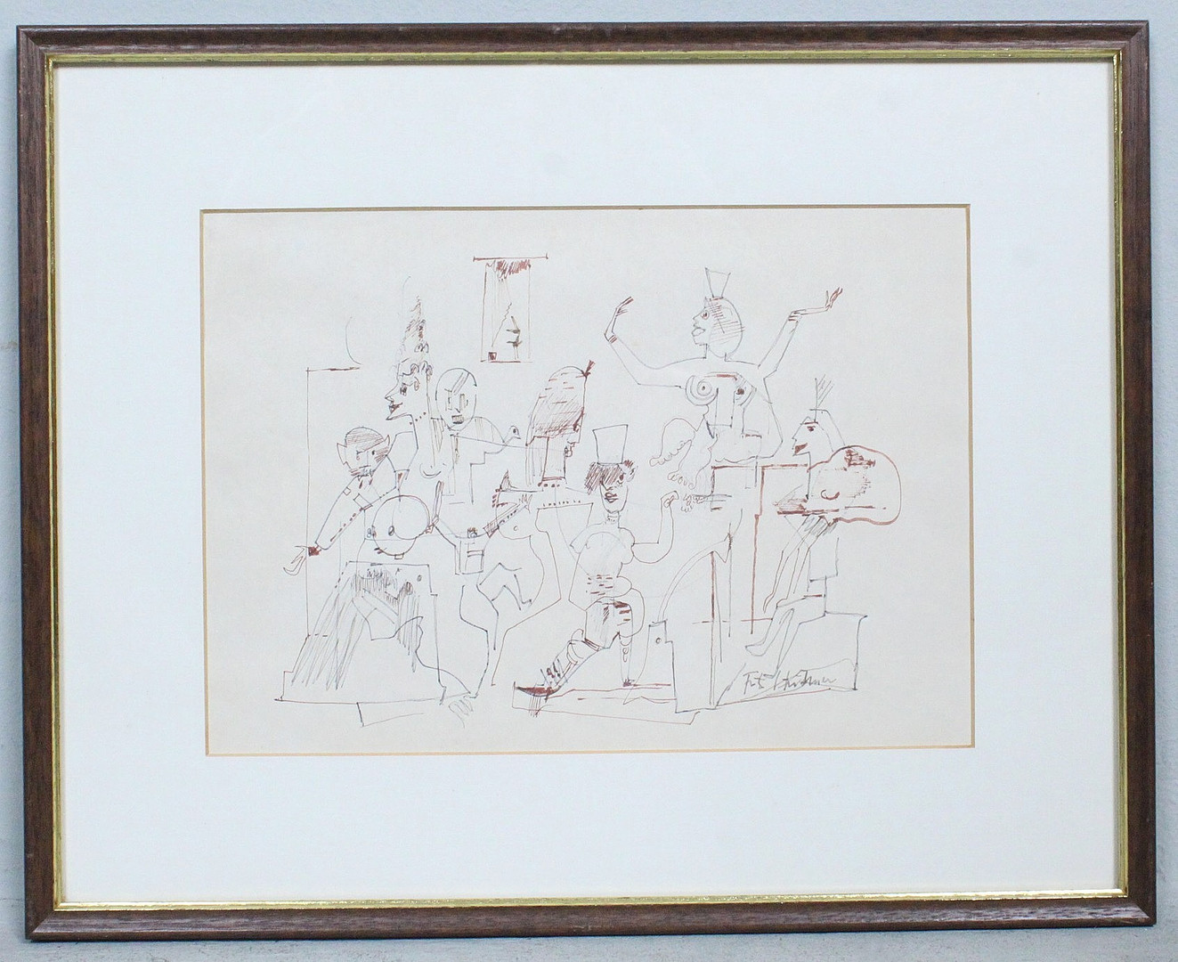 FRITZ HUHNEN. 'Nachtleben', Tuschezeichnung, signiert.