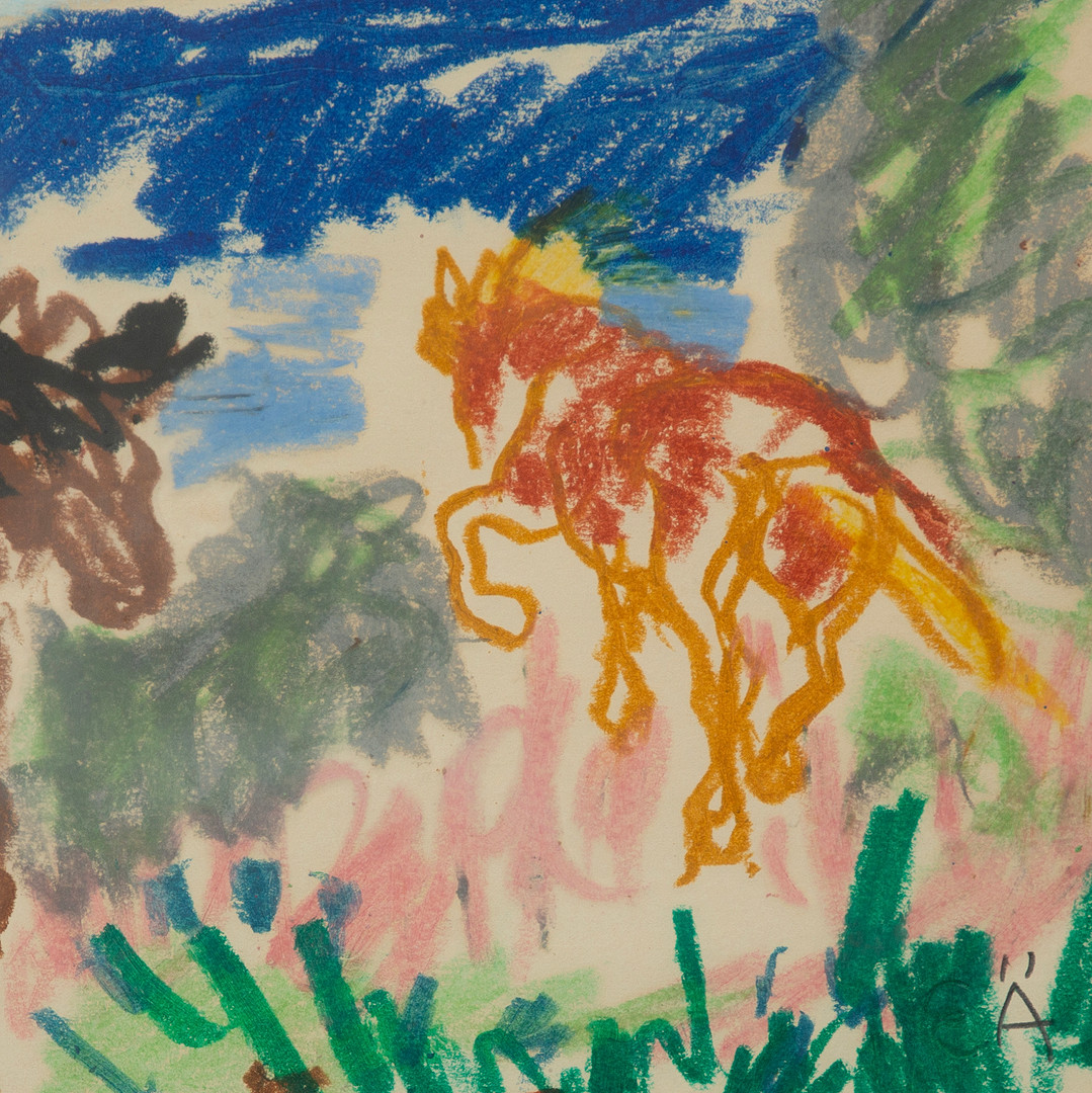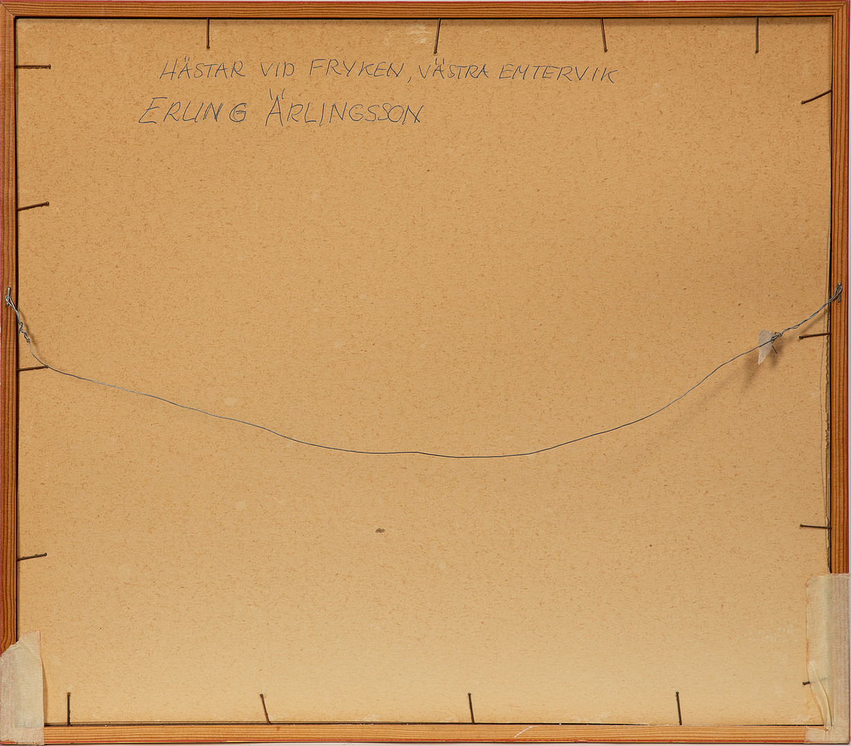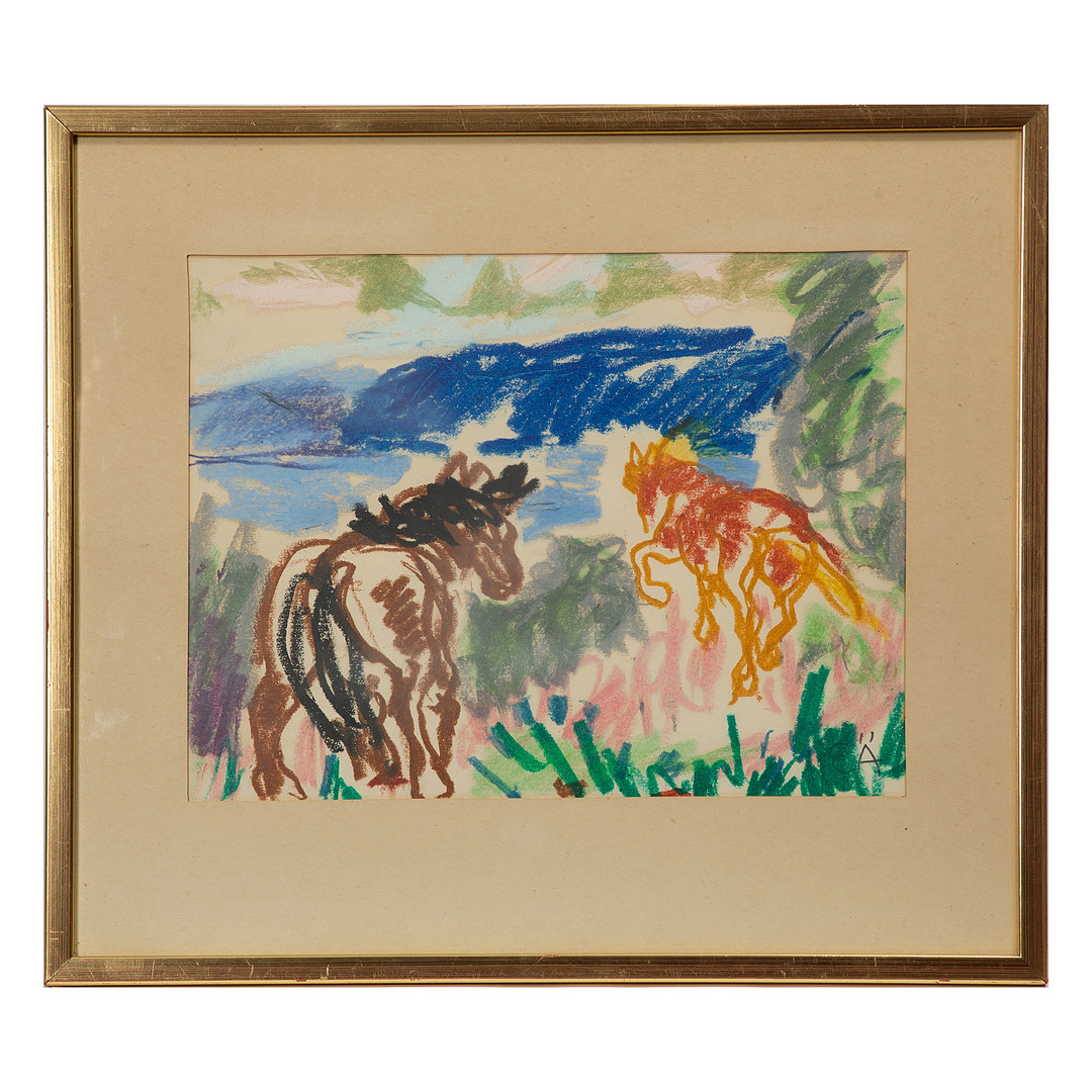 ERLING ÄRLINGSSON. Pastell, "Hästar vid Fryken, Västra Emtervik" monogramsignerad E. Ä.