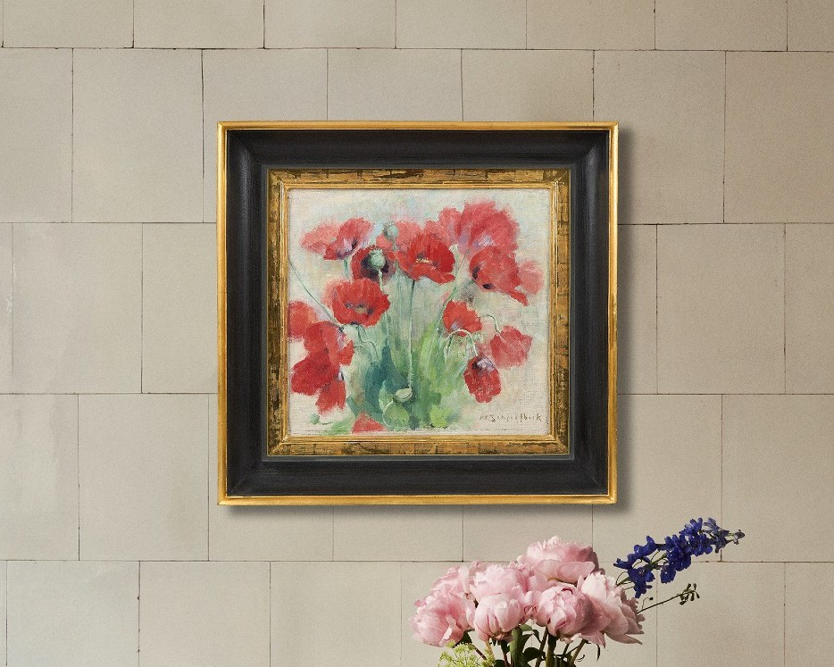 Helene Schjerfbeck painted flower motifs throughout her long career. For her, flowers were more than just beautiful flowers, especially in her later years when their meaning was strongly tied to the giver. For example, the shimmering effect in the 1920 painting Kieloja vinossa maljakossa (Lilies of the Valley in a Tilted Vase) was influenced by her student Ann-Marie Häyrén’s mother, a physiotherapist, who brought the flowers to Helene while she was recovering from an illness in Tammisaari. The Poppies painting was created by a young artist in good health, who was able to travel abroad despite her physical limitations, taking on commissions to replicate masterpieces from the State Hermitage Museum in St. Petersburg in 1892. In 1893, when the Poppies painting was created, she made her northernmost trip to Finland with Maria Wiik and Ada Thilén to Kangasala. Remarkably, in the Poppies painting, the poppies seem to grow directly from the soil, in their natural state. Schjerfbeck created another similar work, Kevätnarsisseja (Spring Daffodils), which was also painted with flowers in their natural form. Typically, her flower motifs were in vases or indoor pots, as moving in nature became more difficult for her over the years.