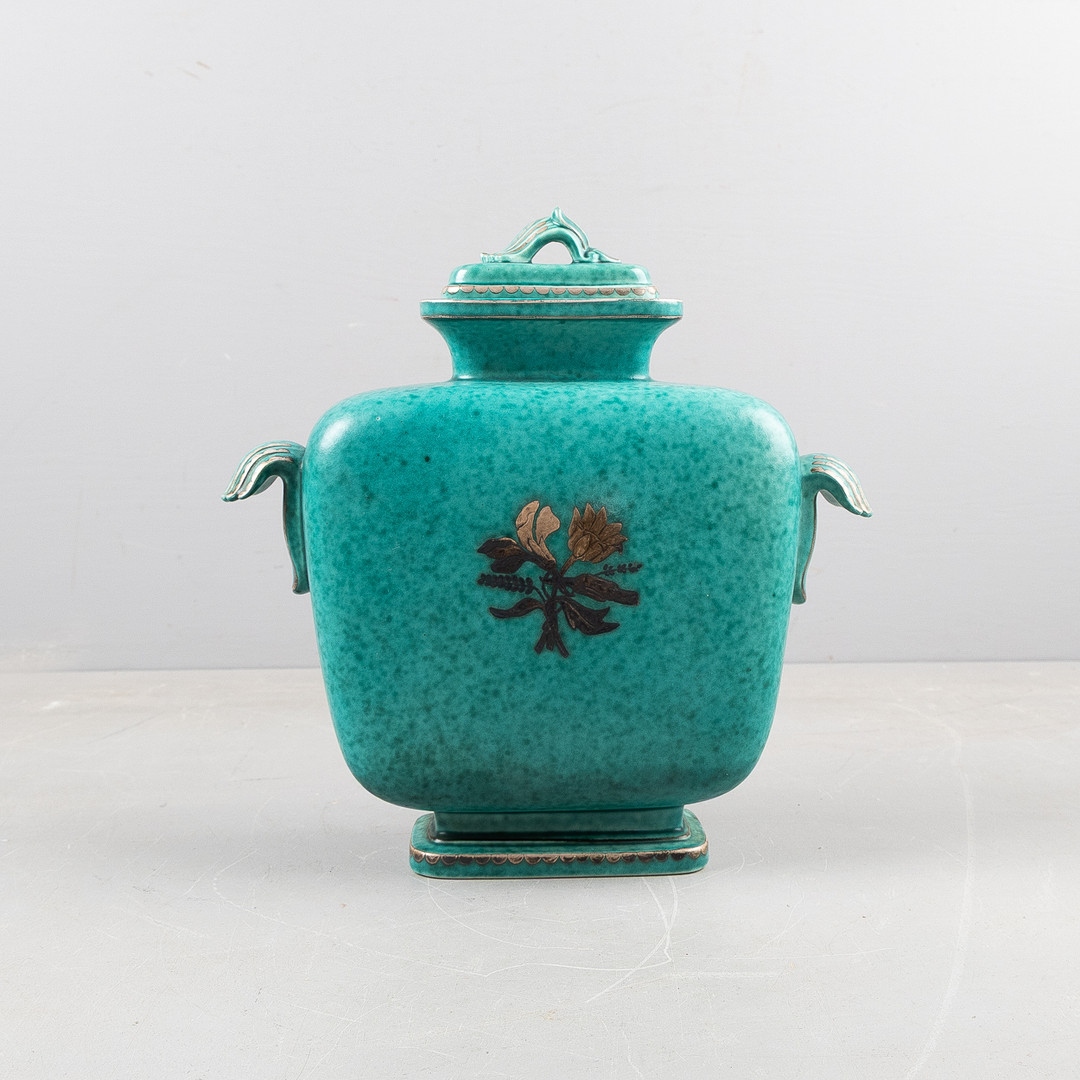 WILHELM KÅGE. Lockurna, "Argenta", modell 1207, Gustavsberg, stengods med silverdekor.