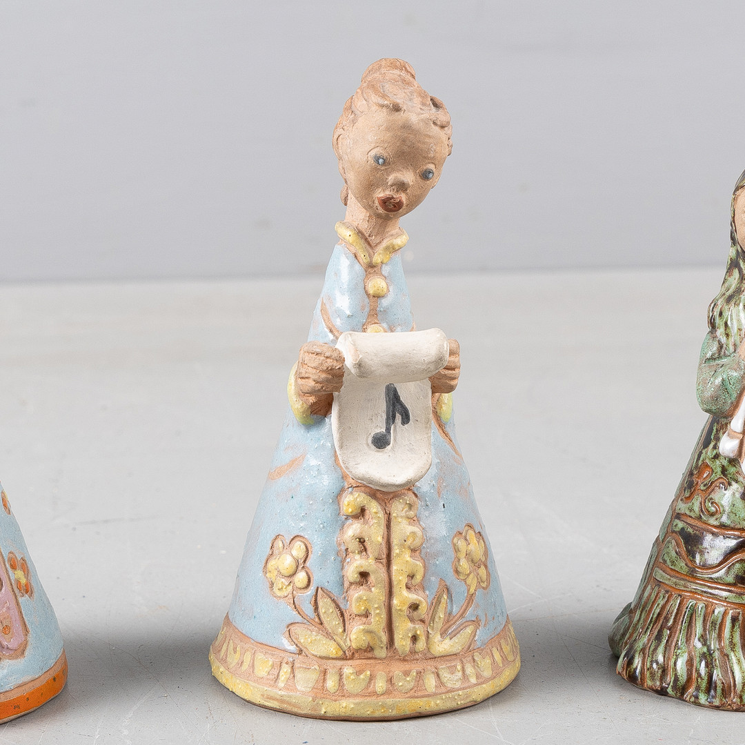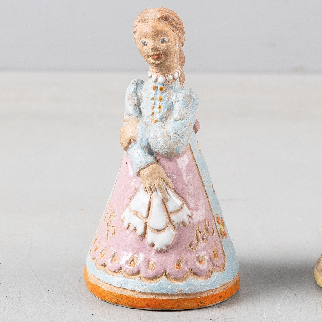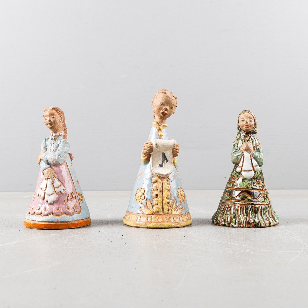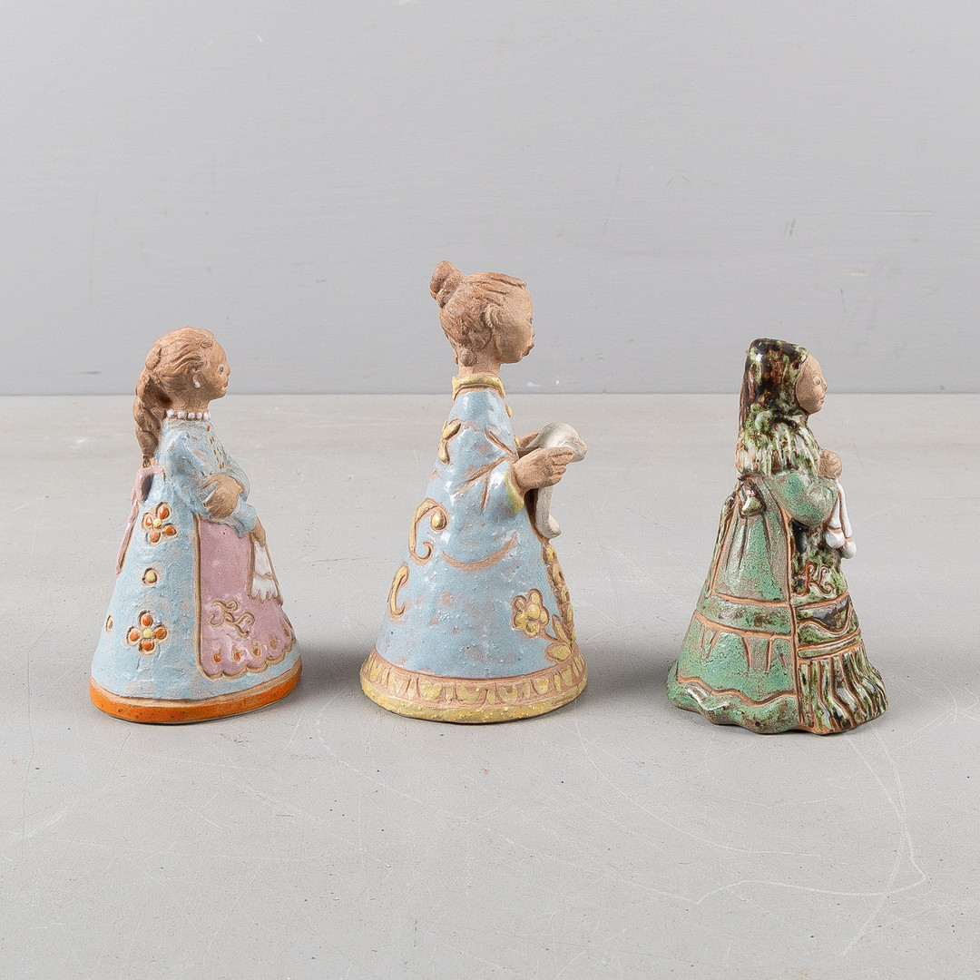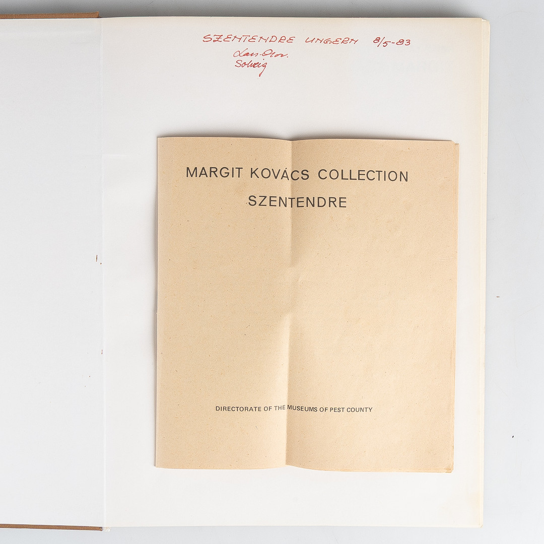 MARGIT KOVÁCS (1902-1977). Skulpturer, 3 stycken, lergods, i form av flickor, signerad med monogram, samt bok, Ungern.