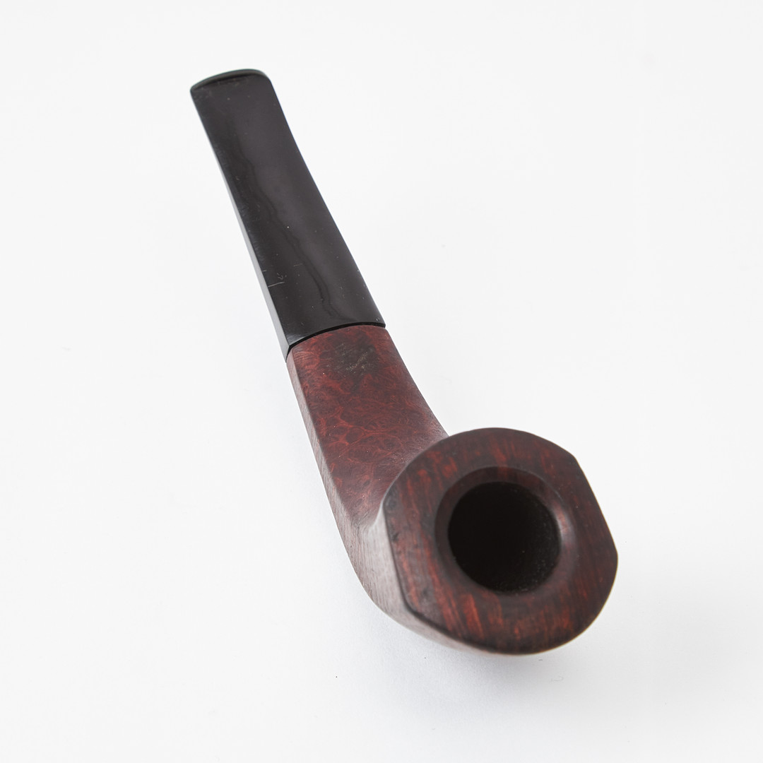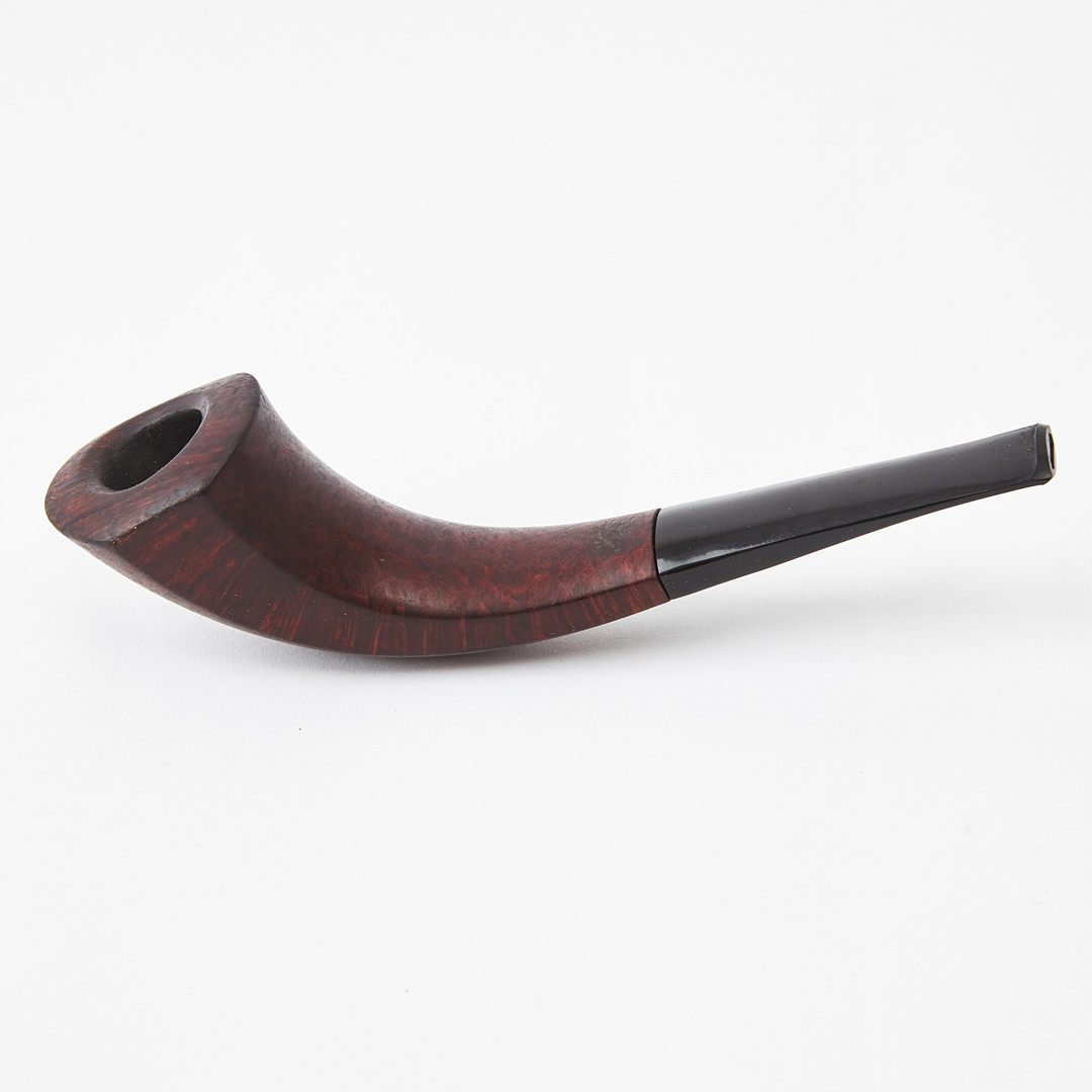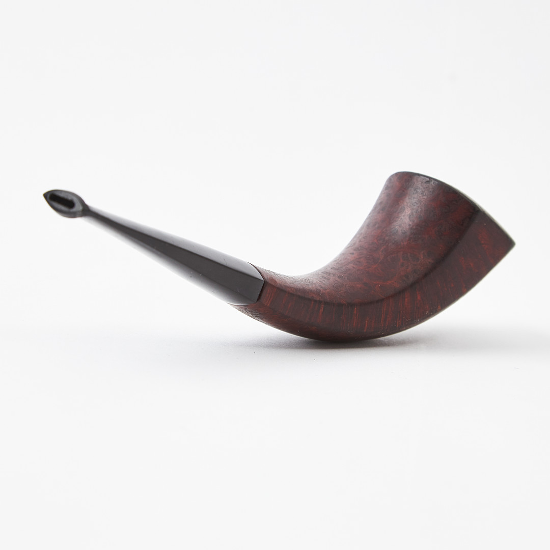 There are, however, certain materials in addition to briar and ebonite which have found favour after critical investigation. Horn is used in certain insert (military) pipes. "A sensitive and difficult material which requires to be stored for a long time in order not to crack," says Bo. Bamboo is sometimes used, often because he has found a fault in the shank of an otherwise nice pipe. Boxwood is also used but mainly in the Calabash-model where the cup is a combination of briar and boxwood. "But there are times," Bo confesses, "when I have made an insert pipe of boxwood instead of horn. But that has happened when I have been in a hurry and not found a suitable piece of horn."