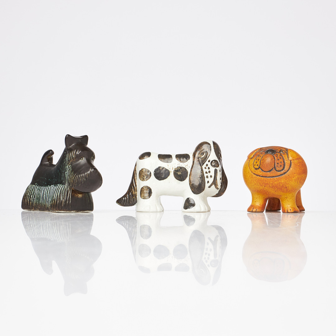 LISA LARSON, 3 st., hundar ur serien "Kennel", 1970-tal, vit stengodslera.