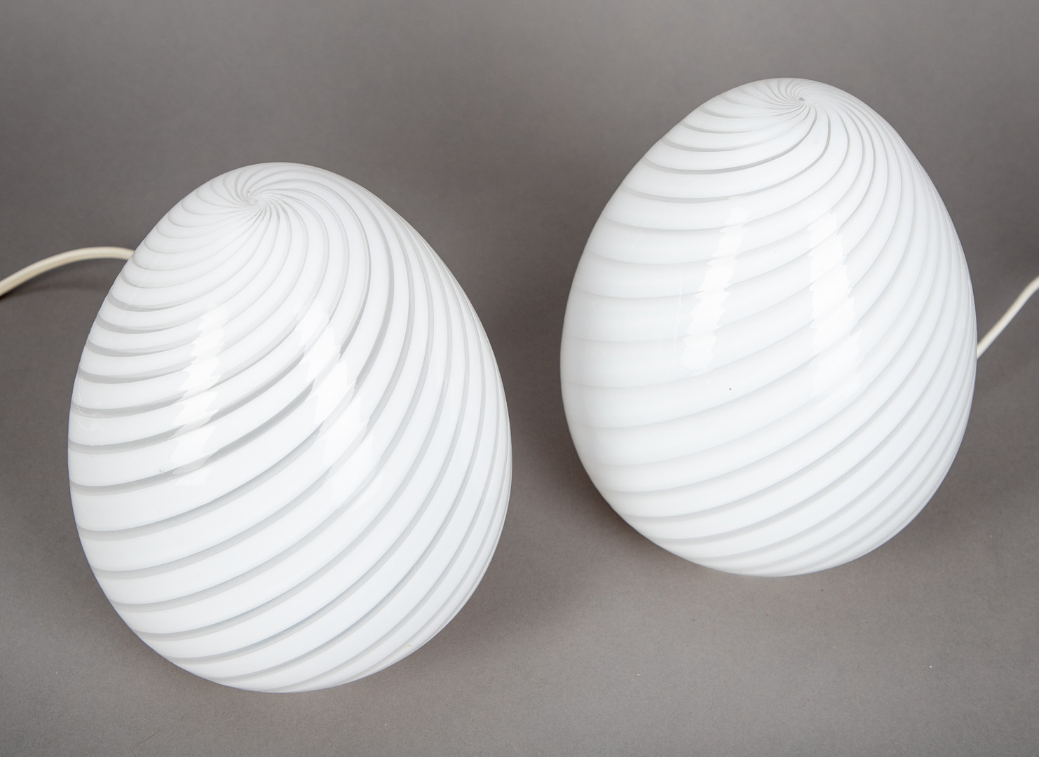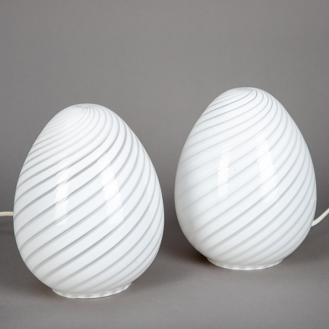 Paar Murano-Ei Tischlampen, "Swirl" (2).