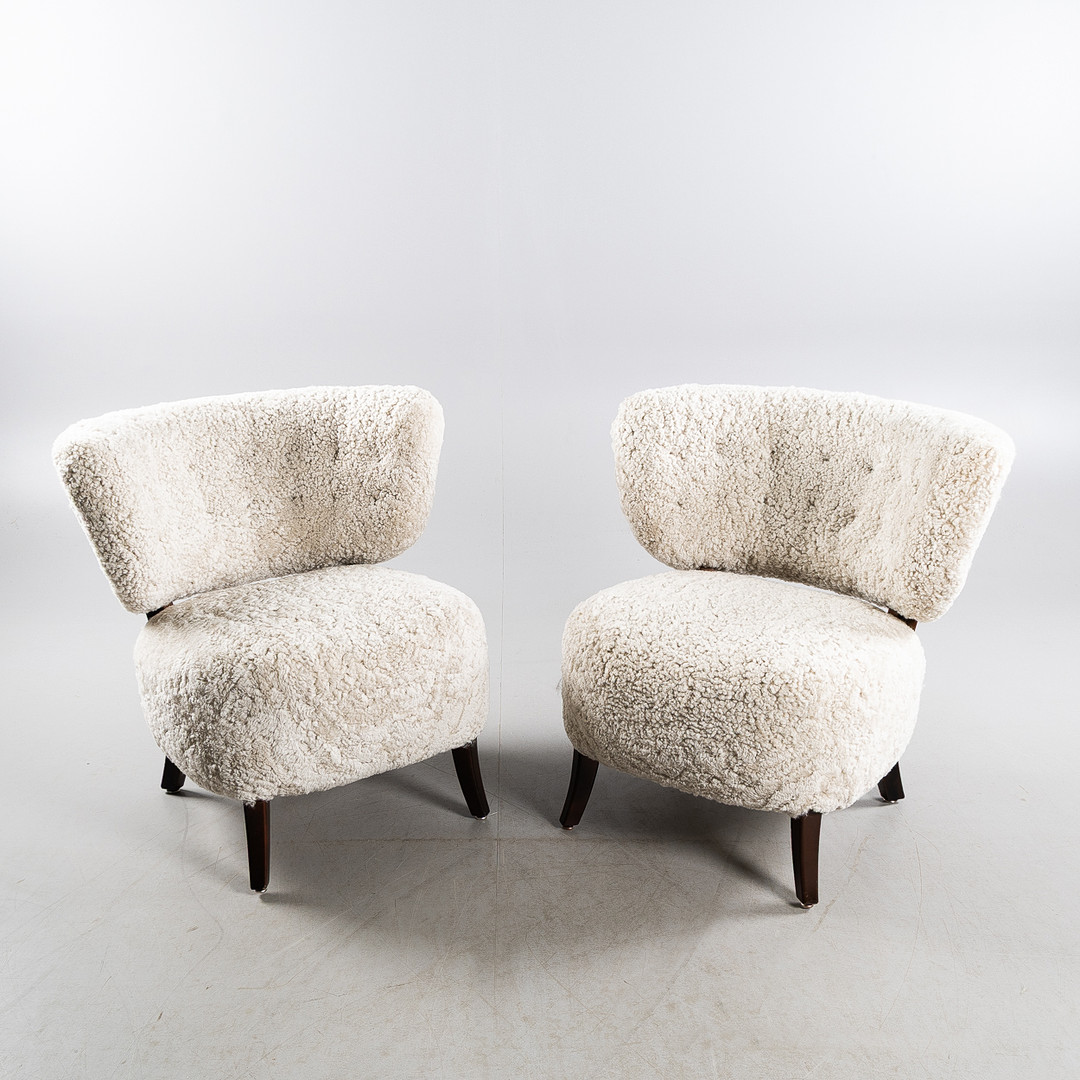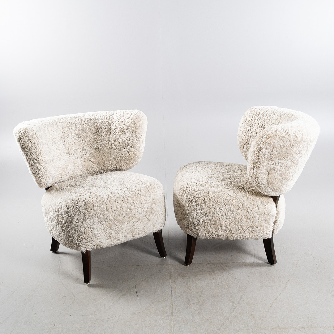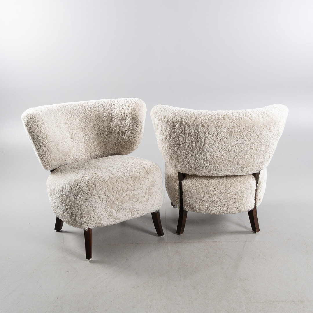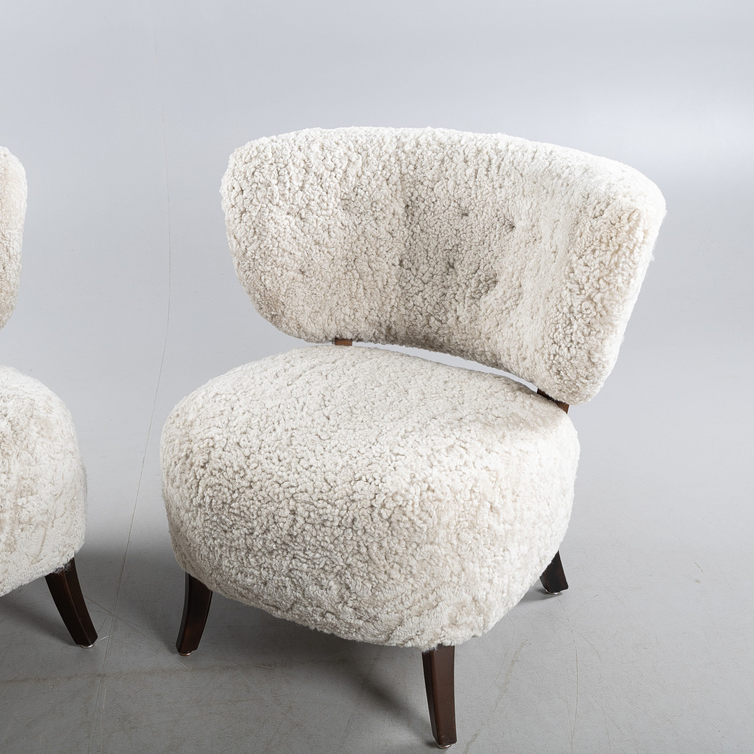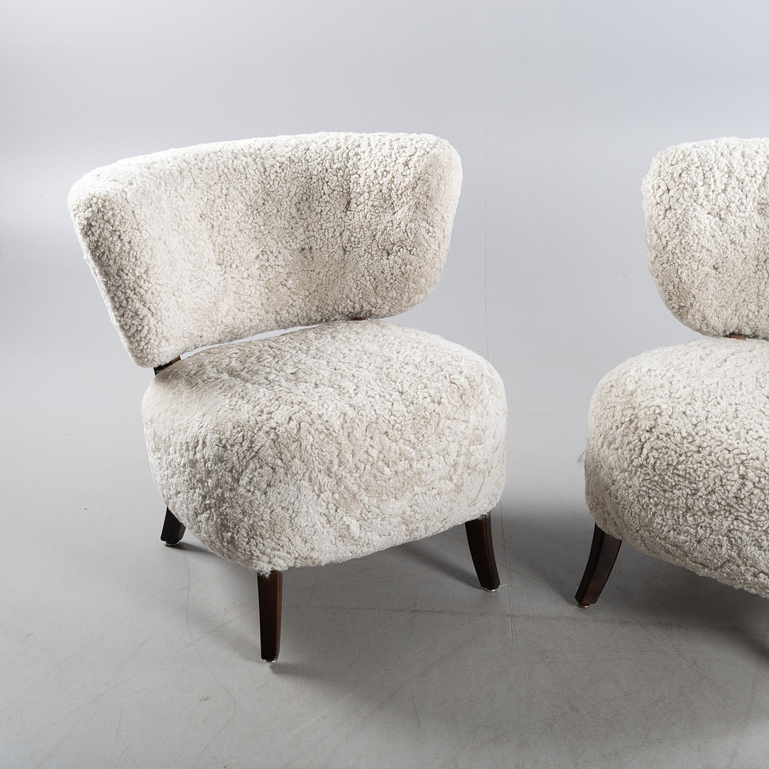 FÅTÖLJER, ett par, Swedish modern, i Otto Schulz stil, klädda i fårskinnspäls Moonlight.