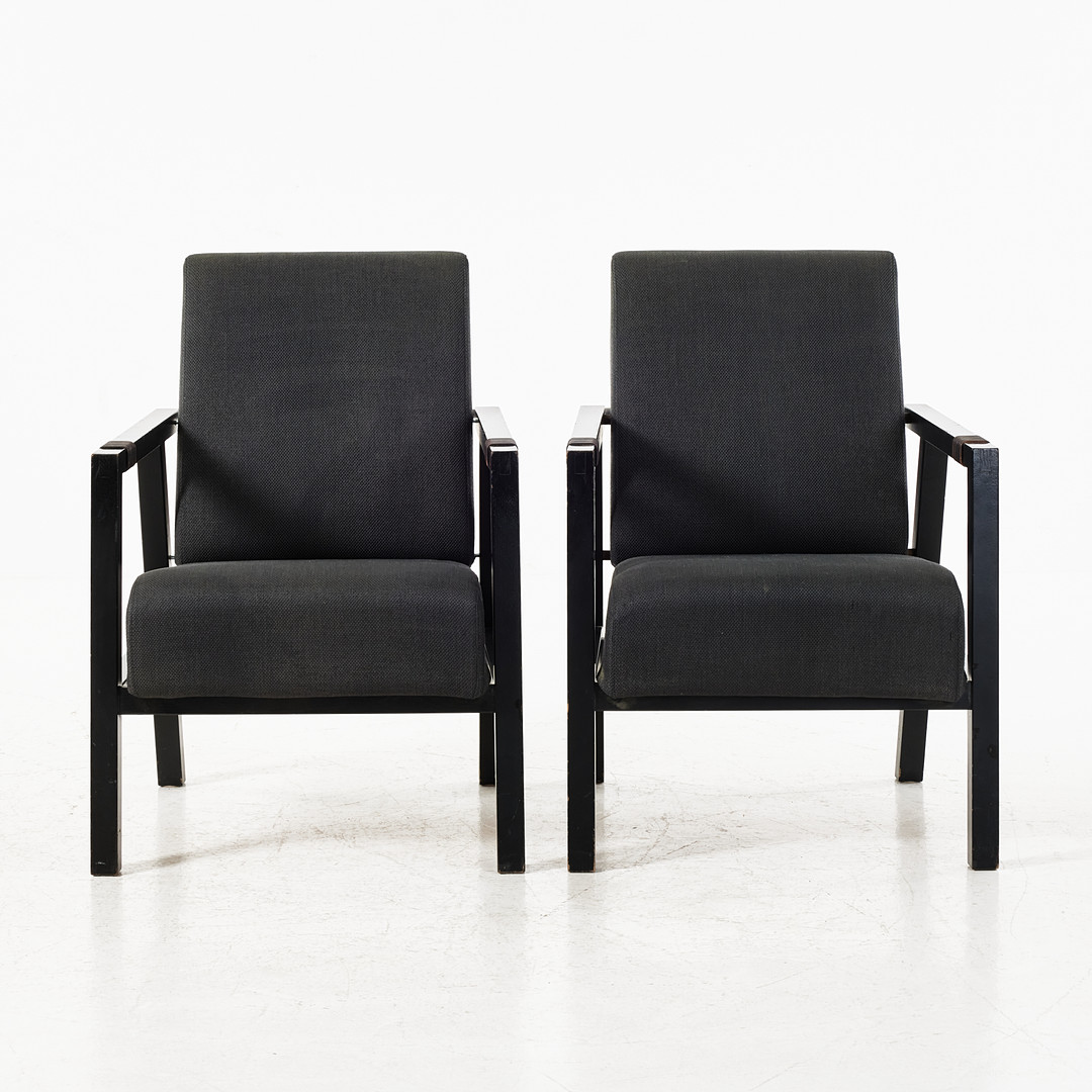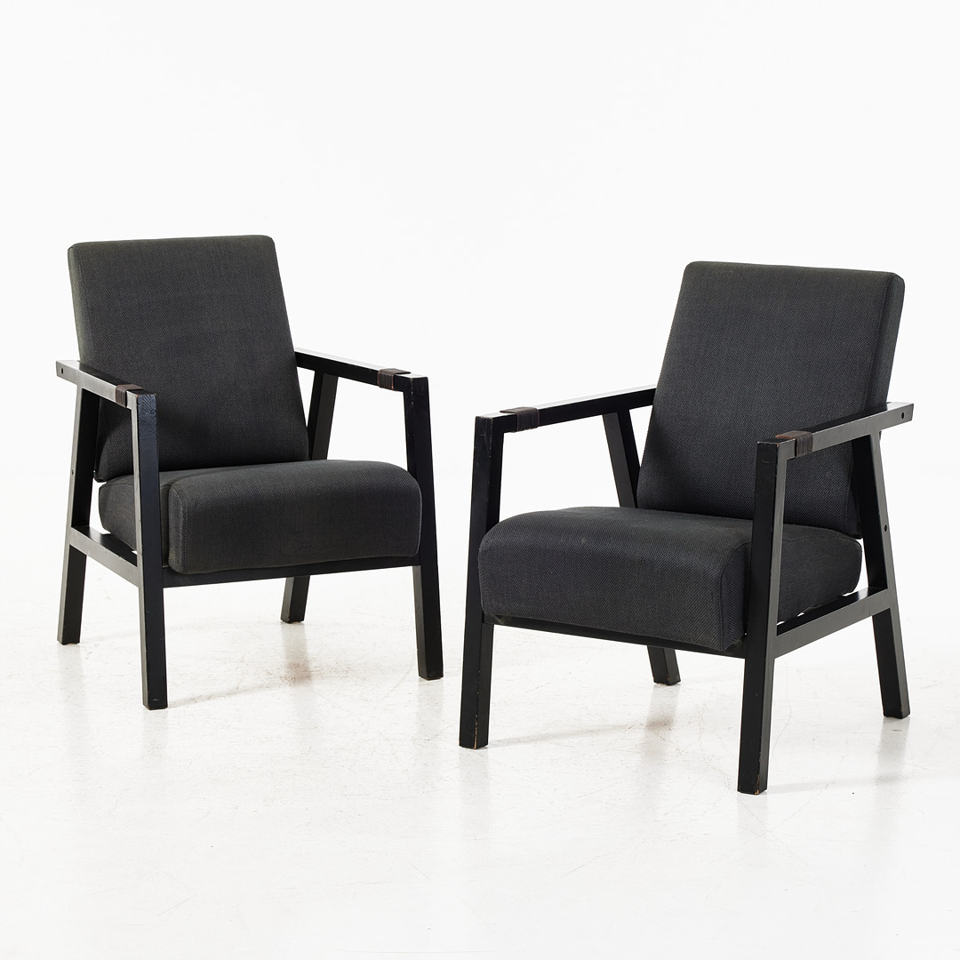 KERSTIN OLBY. fåtöljer, ett par, modell "Jako" Fåtöljer, låg modell, skyltmärkt.