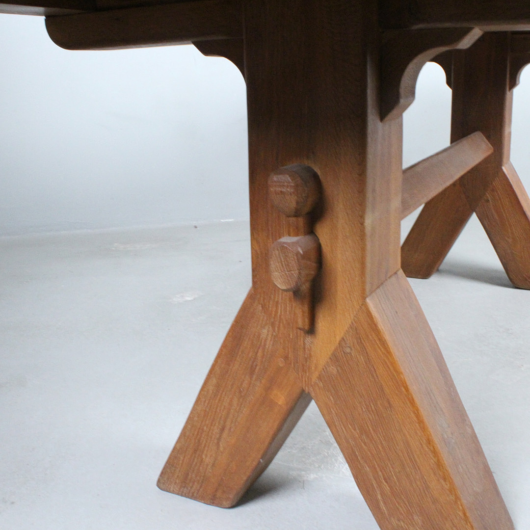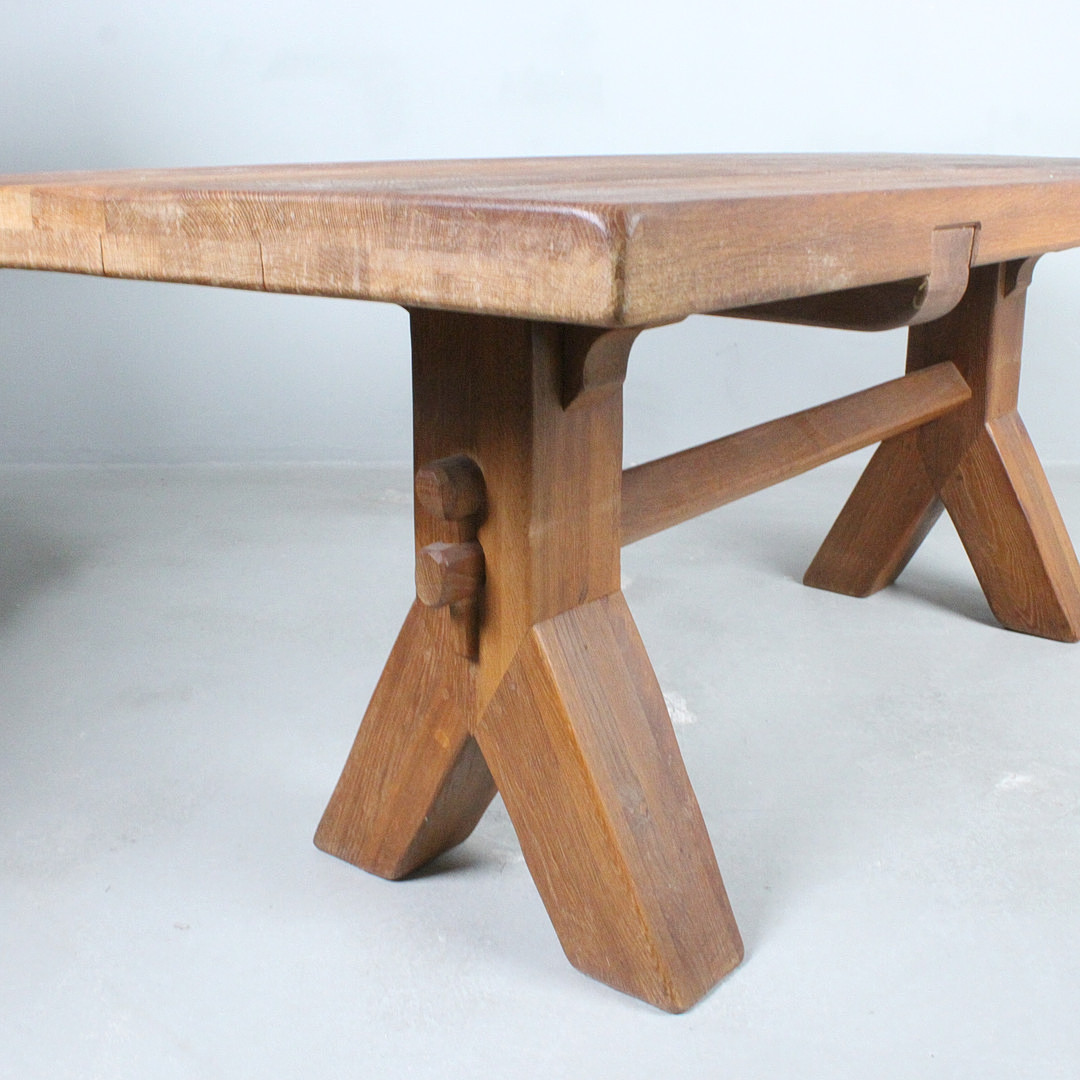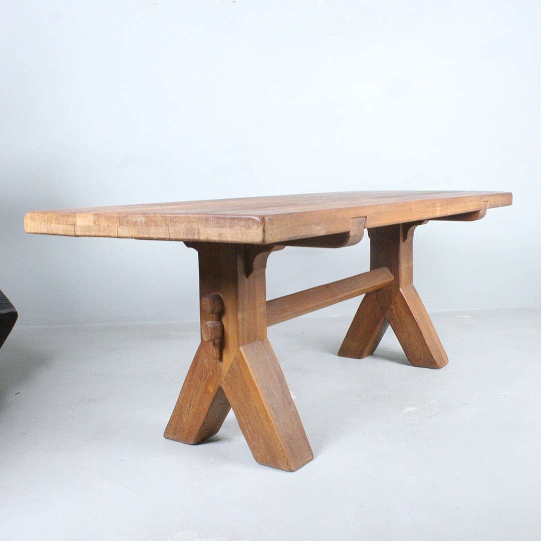 DE PUYDT. Brutalistischer Esstisch aus Eiche, Belgien, 1970er Jahre.