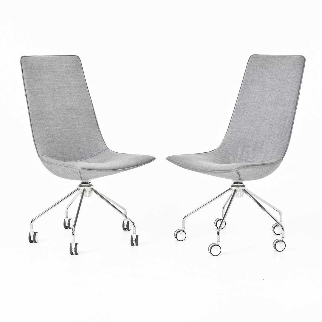 GUNILLA ALLARD. "Comet", skrivbordsstolar, 1 par, Lammhults, kromat underrede med hjultrissor, klädsel i grå textil.