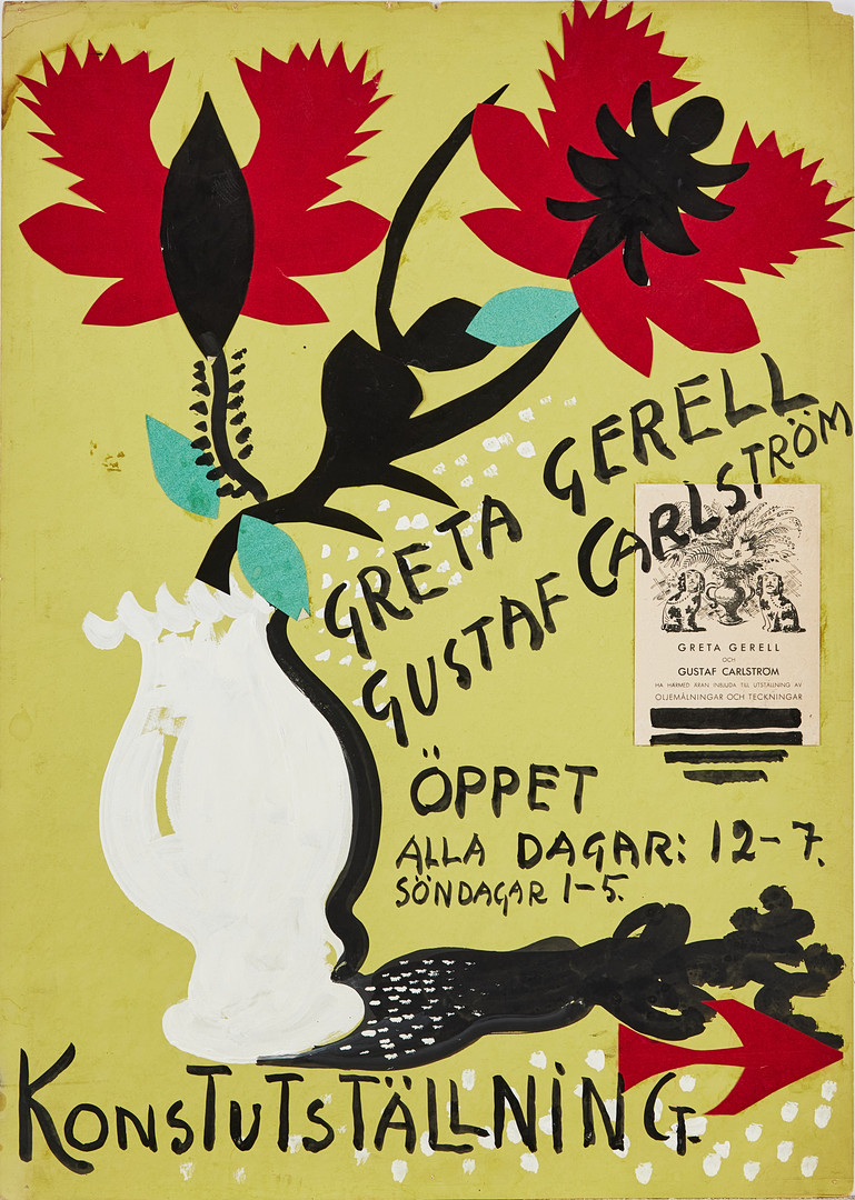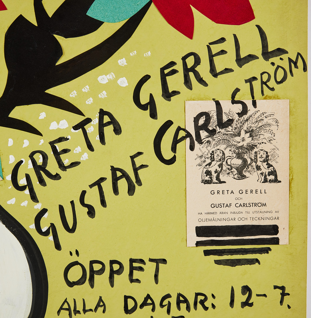 GRETA GERELL, GUSTAF CARLSTRÖM. Förlaga till konstutställningsaffisch, blandteknik.
