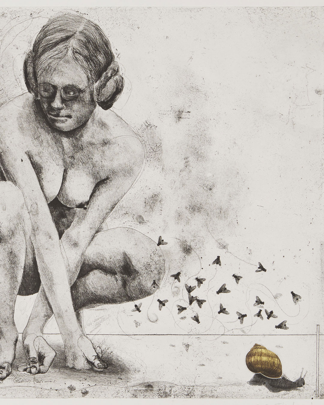 At Stockholms Auktionsverk, Magasin 5, we are now offered a fine demonstration of his skill. The selection includes etchings from the 1960s and 1970s, and alongside 26 individual works, the portfolio “7 Etchings” from 1975 is also presented.