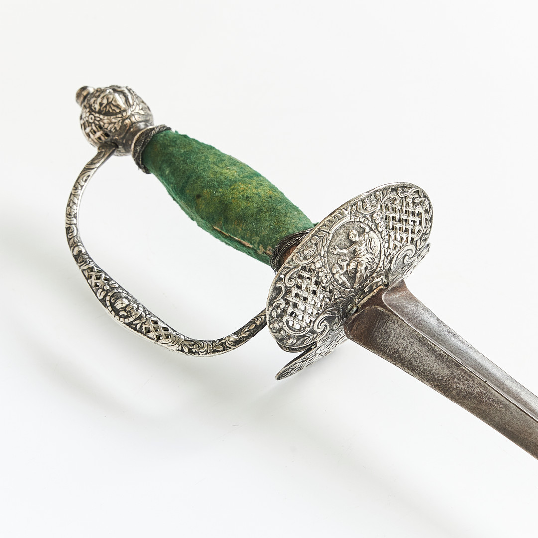 DRÄKTVÄRJA, sannolikt fransk, delvis genombrutet silverfäste, ca 1750-1770.
