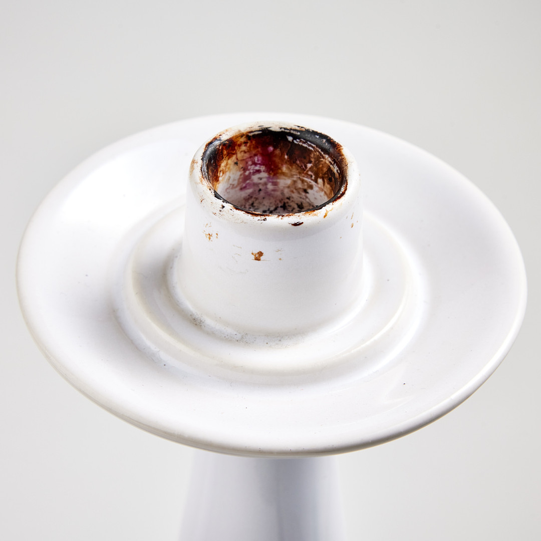 Bruksslitage, en fot utan kupa, glaskupor med mindre nagg, en droppbricka med nagg, en fot med spricka.