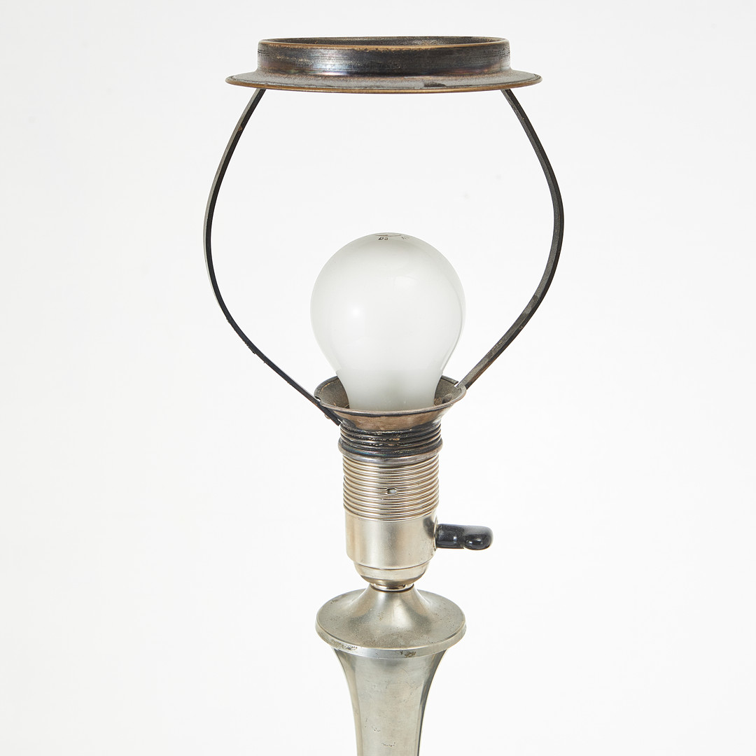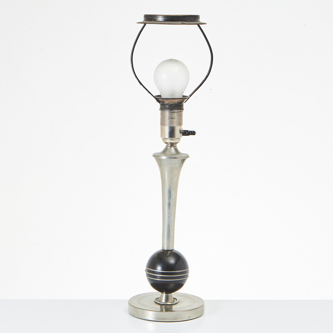 BORDSLAMPA, art deco, tenn dekor av klot i svärtat trä, 1920-tal.