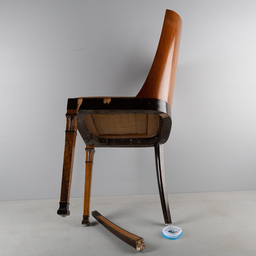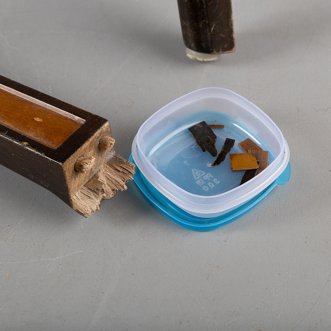 Fanérskador, ett ben avknäckt, bruksslitage.