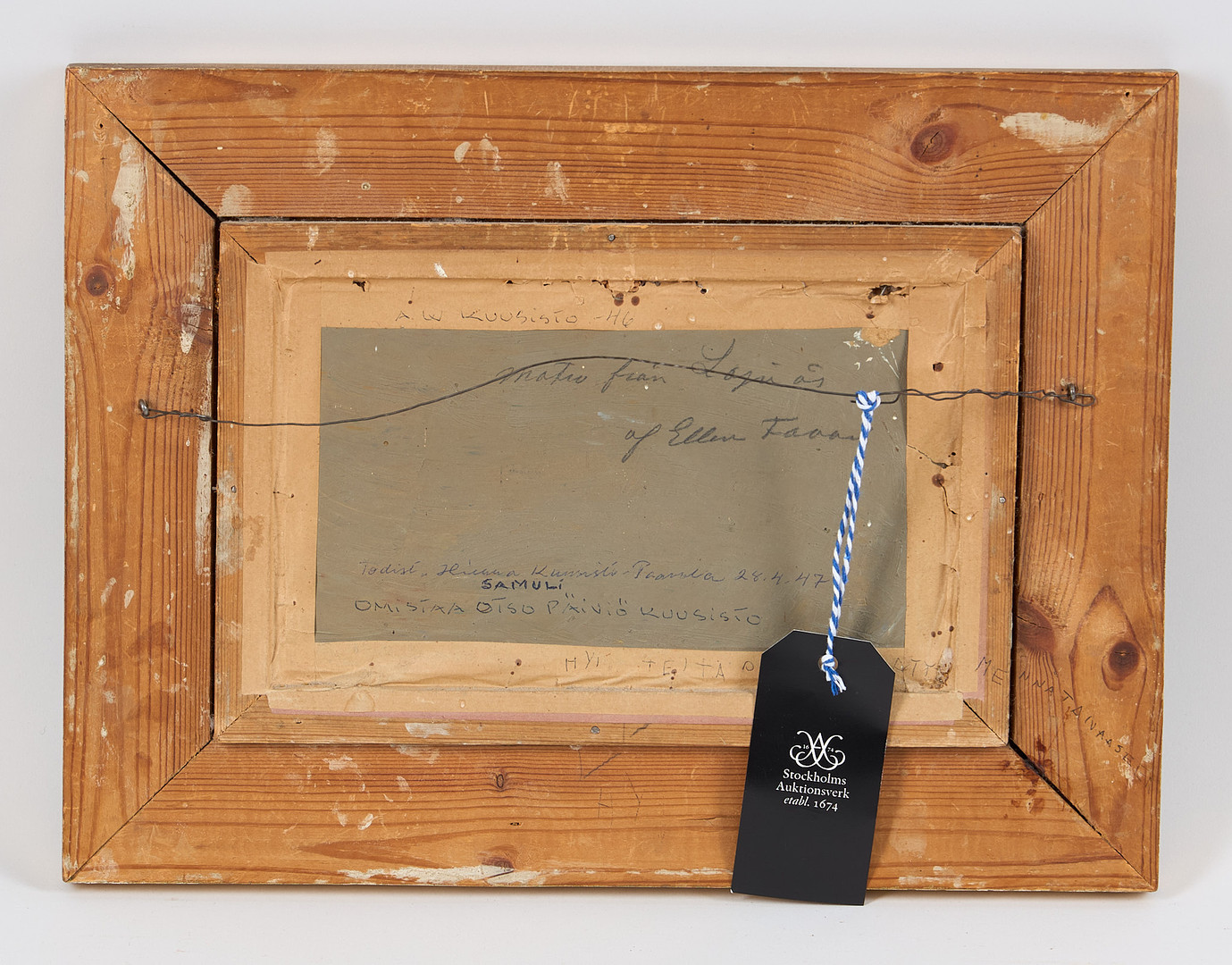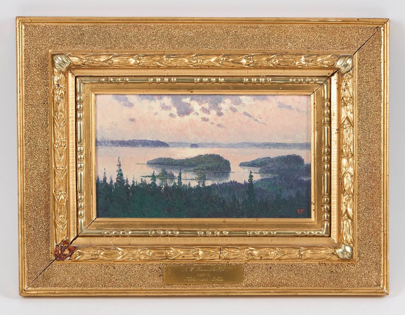 ELLEN FAVORIN. Utsikt över Lojo sjö, signerad, olja på pannå.