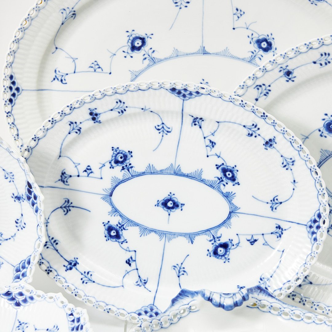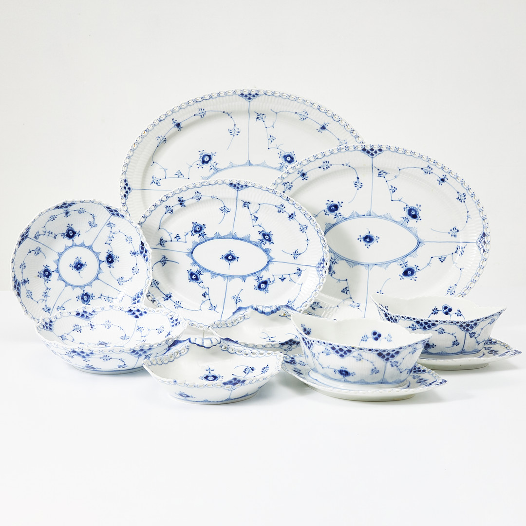 ROYAL COPENHAGEN, "Musselmalet - Blue Fluted Full Lace", 9 dlr., porslin, Danmark, 1900-talets andra hälft, helblonde.