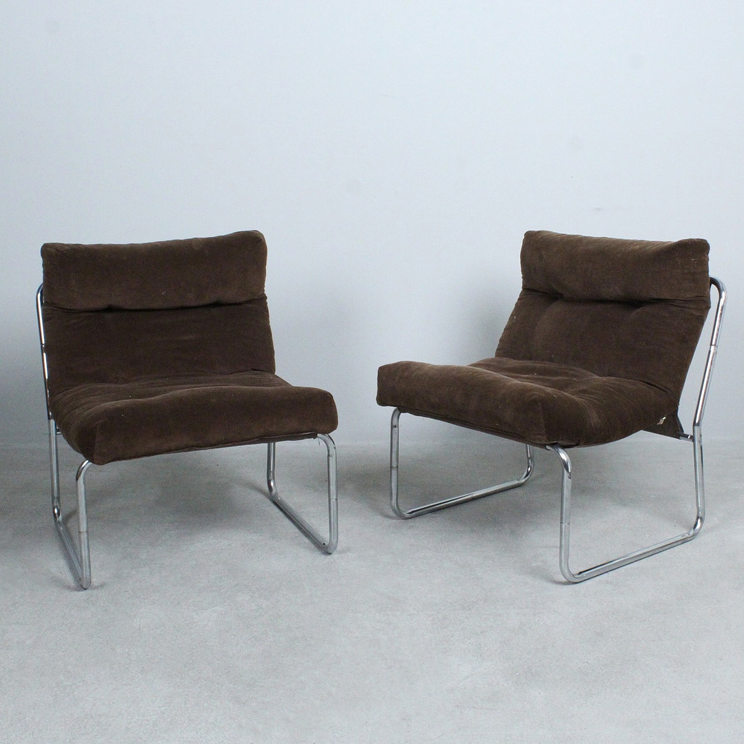 GILLIS LUNDGREN. für Ikea, Sessel, Modell '' PIXI '' , Stahlrohr, Cord, 1970er.