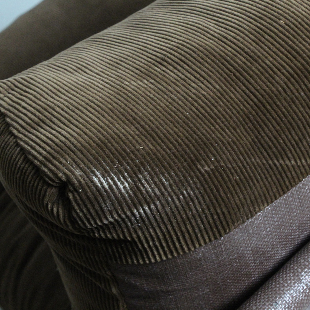 Altersgemäße Gebrauchs- und Reibespuren, partiell Kratzer und Bereibungen, Stoff partiell fleckig / angeschmutzt und ausgeblichen.