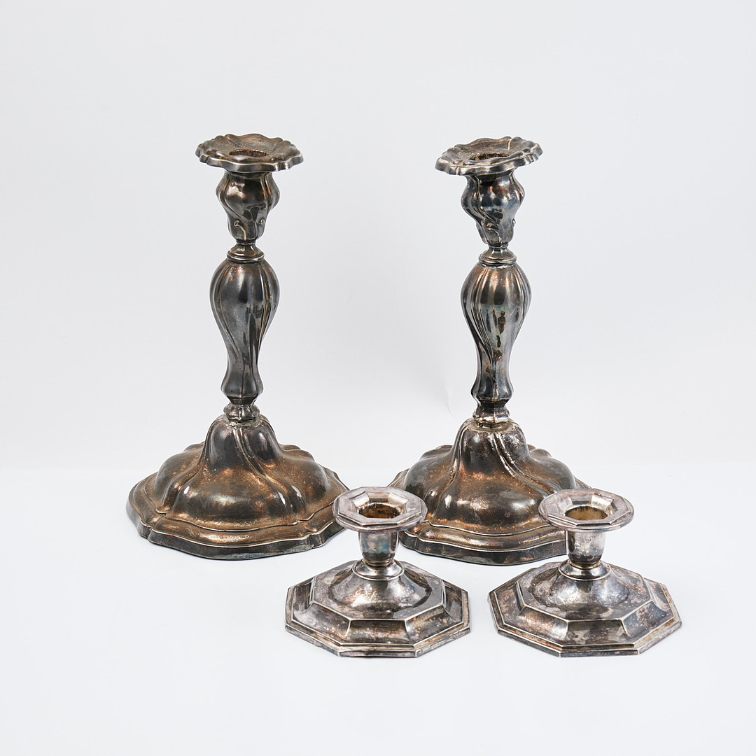 LJUSSTAKAR, 2 par, silver, 1900-tal, stämplar, samtliga med fyllda bottnar.