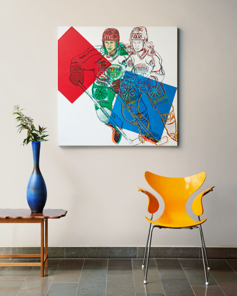 The Modern Art & Design Sale was a major success, achieving no fewer than eleven million-SEK results following intense Swedish and international bidding. At the very center of the live auction was Andy Warhol’s newly discovered painting Frölunda Hockey Player, which sold for SEK 5 million. In total, art and design sold for over 70 million SEK, including buyer’s premiums, during The Modern Art & Design Sale.