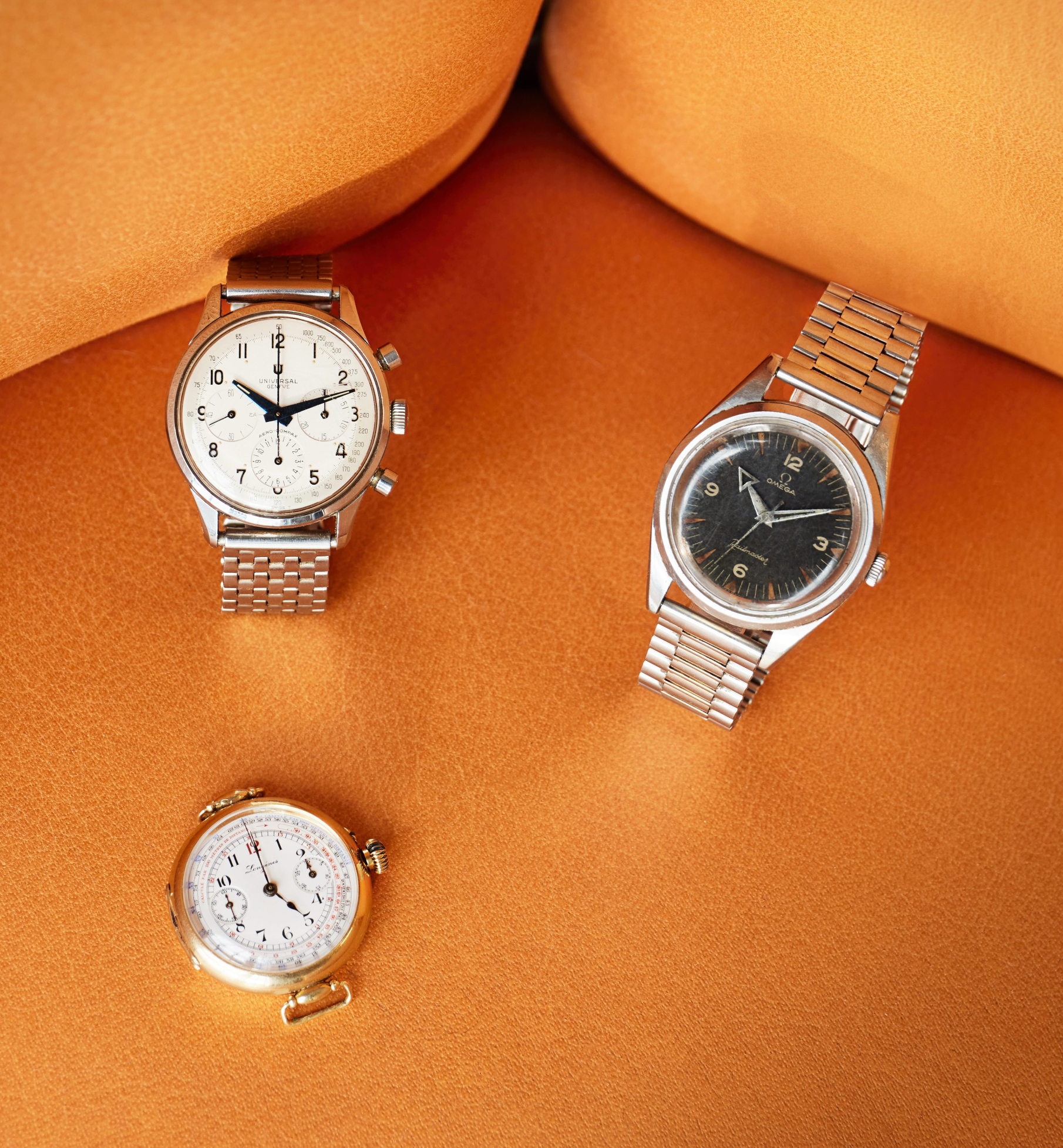 Bland höjdpunkterna finns en Longines Monopusher i 18K guld, tillverkad under första världskriget – ett sällsynt exempel på tidig kronografteknik. Vi presenterar även den allra första referensen av Omega Railmaster från 1957 – en modell med autentisk patina och stor samlarpotential – samt fem mekaniska kronografer från Heuer, var och en med sin egen karaktär och historia.
