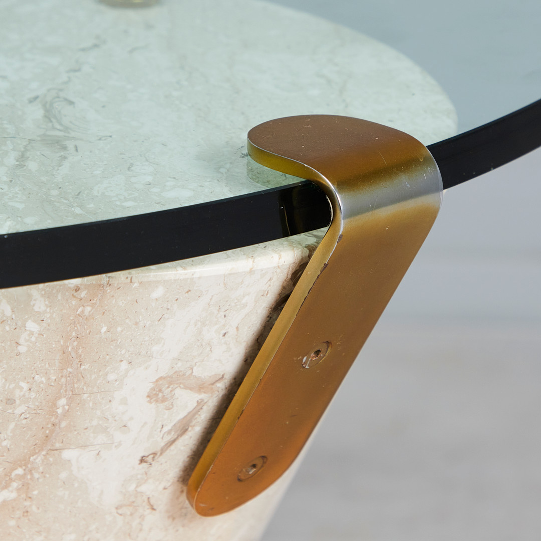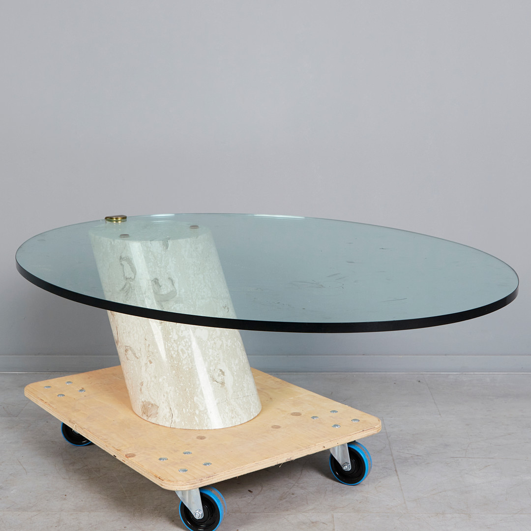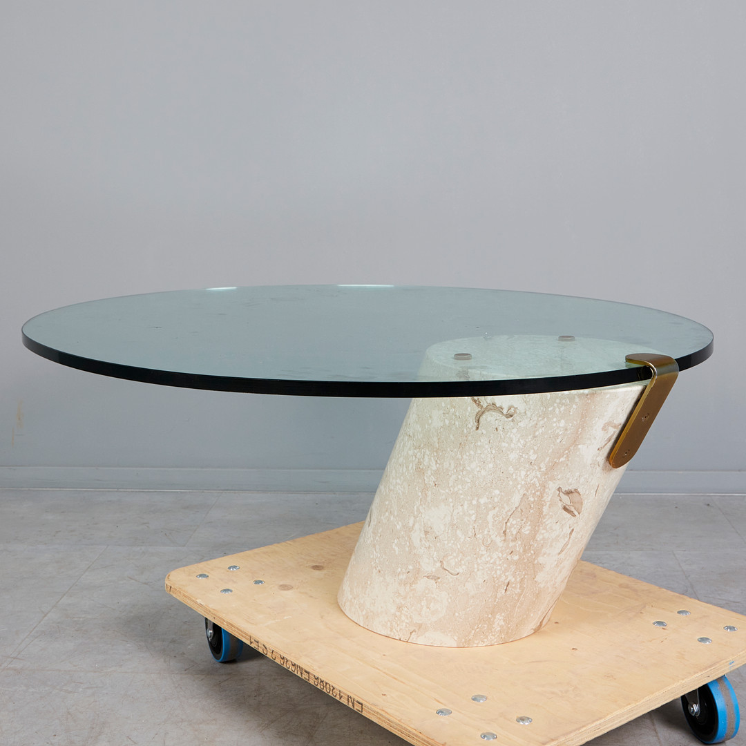 RONALD SCHMITT. Couchtisch/Coffee Table von Team Form, Modell: K1000, Deutschland, 1980er Jahre, Travertin.