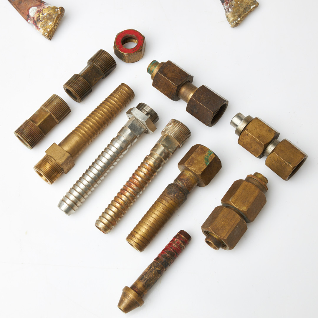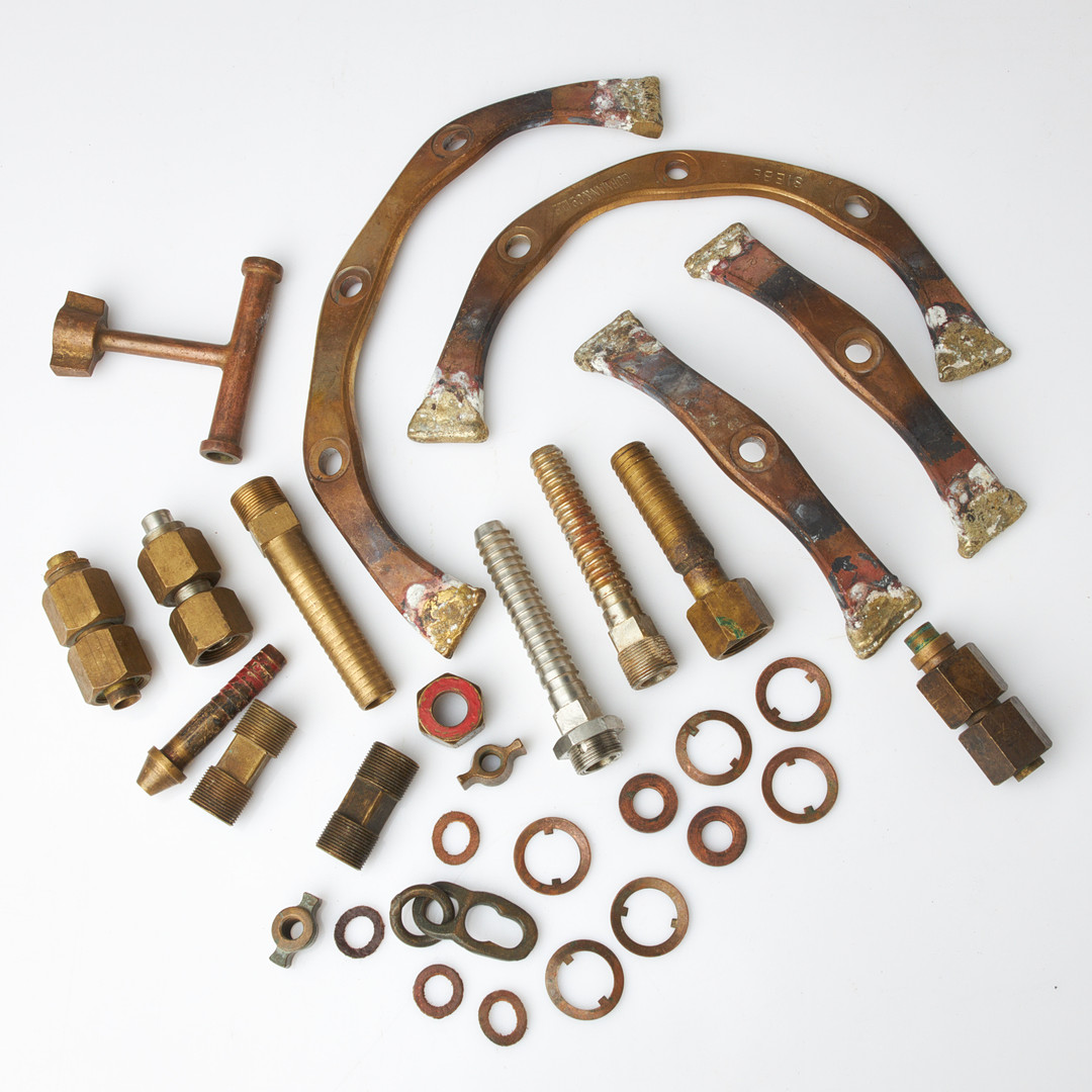 UTRUSTNING för tungdykare, ca 30 dlr., mässing.