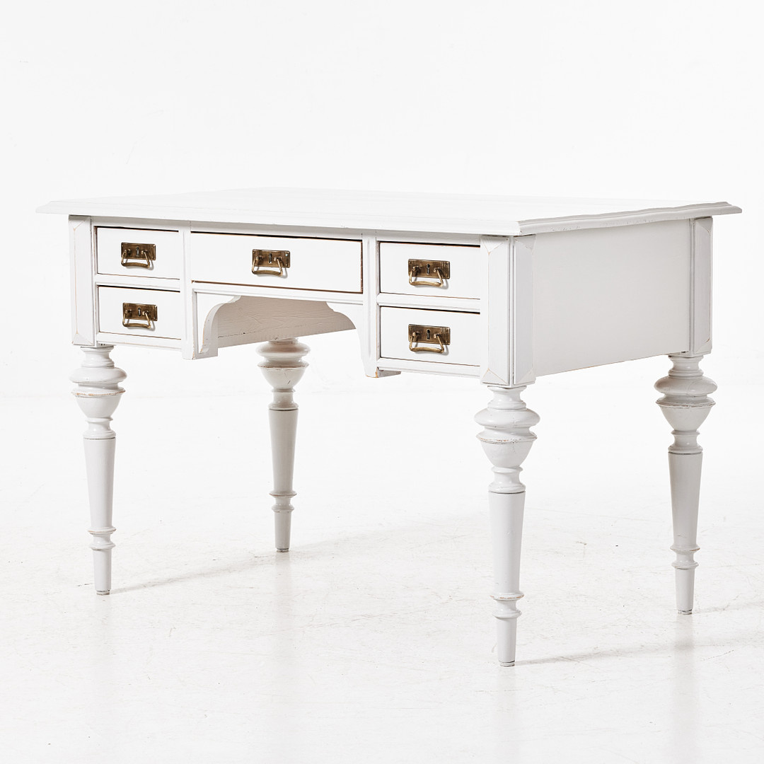 SKRIVBORD, 1800-talets slut, bemålat, svarvade ben, beslag i mässing.