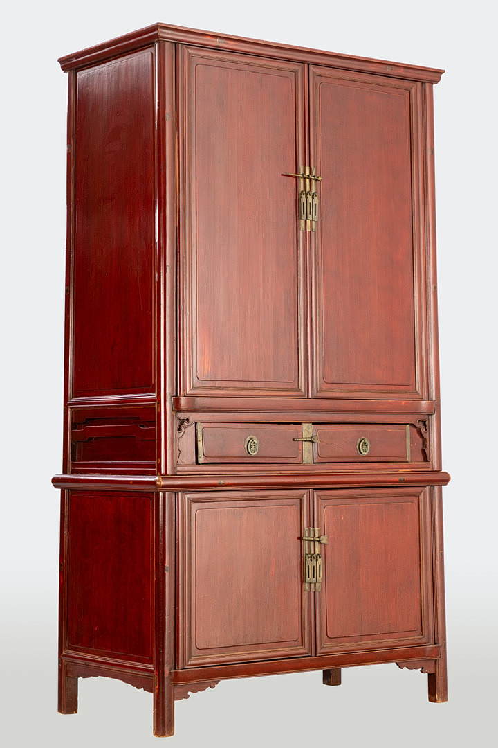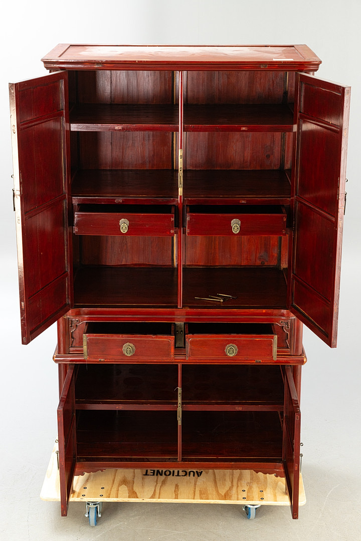 Chinesischer Hochzeitsschrank / Aufsatzschrank, Hongkong, 2. Hälfte 20. Jh.