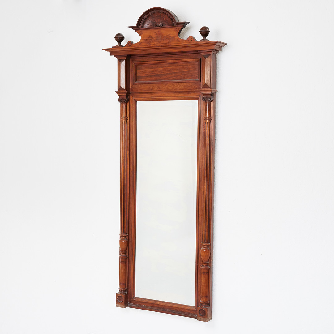 SPEGEL, nyrenässans, 1800-tal, mahognyfanér, facetterat spegelglas.