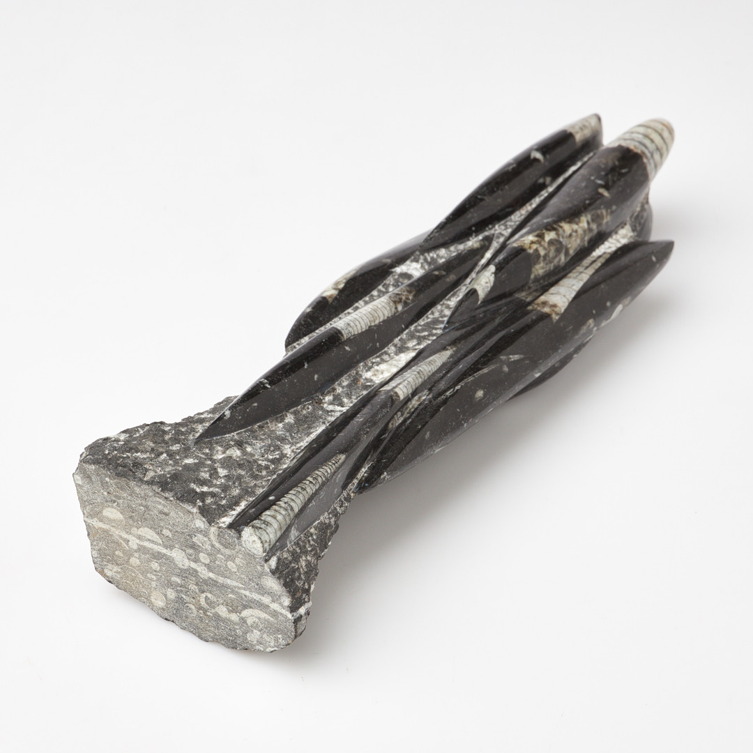 FOSSIL ortoceratit, svart kalksten.