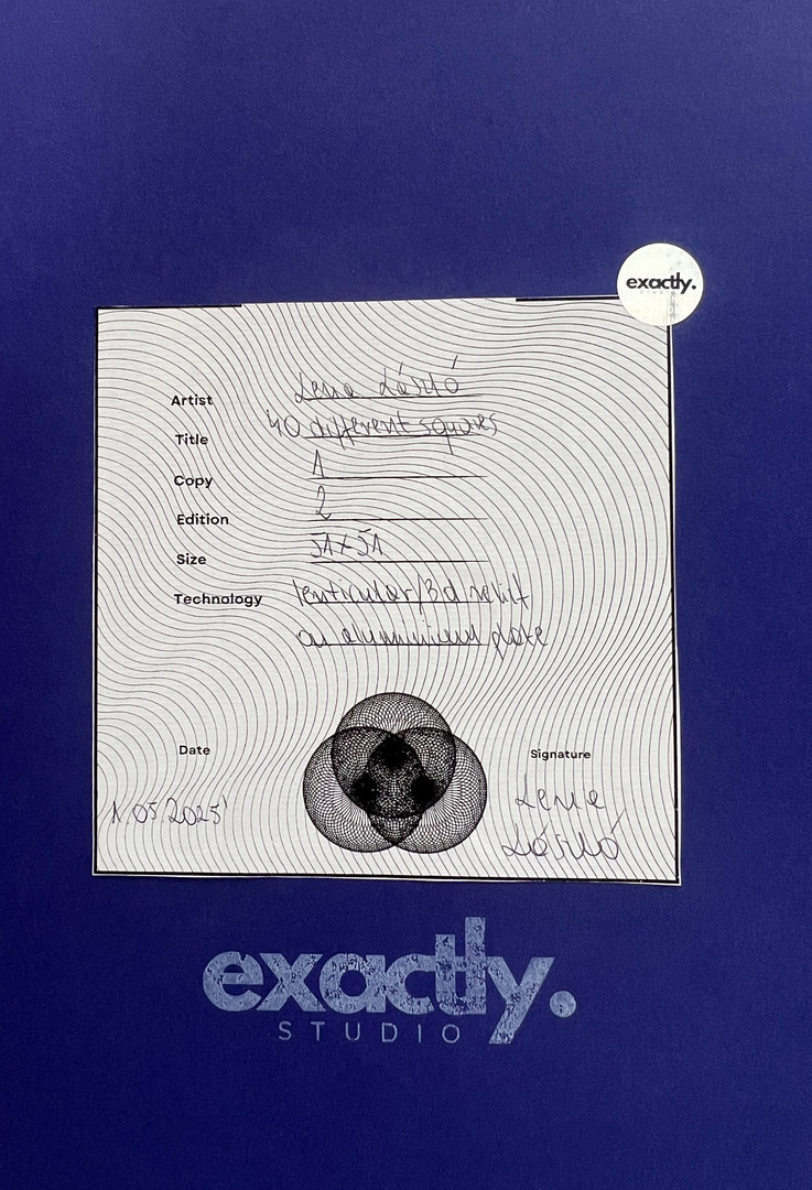 Lena László für Studio Exactly, Lenticular/3d Relief auf Aluminiumplatte mit Lamination, '40 different squares', limitiert.