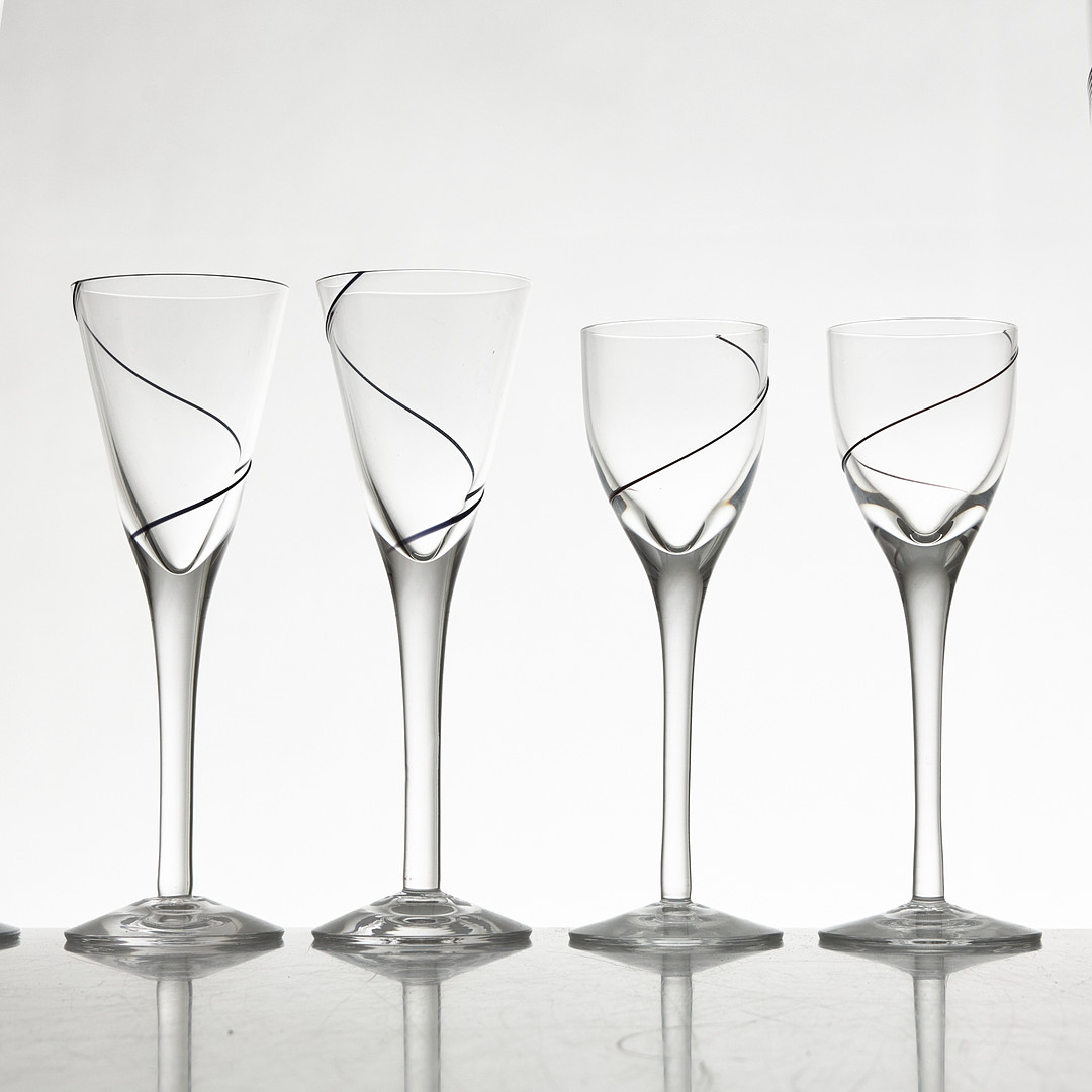 ANNA EHRNER. Glasservis, 38 delar, "Line", Kosta Boda, dekor i svart.